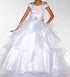 Introducing the Girls Ruffled Pageant Gown by MAC DUGGAL, a stunning formal piece in an elegant White/Silver hue. This gown showcases a sweetheart neck with cold shoulder detailing and is beautifully adorned with a beaded bodice and waist. The ruffled fit and flare skirt provides a dramatic and glamorous silhouette, perfect for special occasions. Patterned elements add a touch of unique sophistication to this enchanting dress.