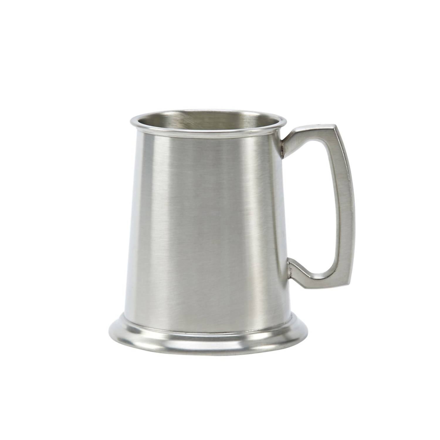 7,6 cm de comprimento x 10,8 cm de largura x 11,4 cm de altura. Capacidade: 473 ml, ideal para uma porção generosa da sua cerveja favorita. Material: Estanho de alta qualidade com acabamento acetinado fosco que não mancha. Design: Apresenta fundo de vidro exclusivo e formato clássico de caneca. Elegantemente embalado em caixa de presente.