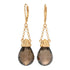 - Quartzo Fumê: 2 pedras, formato Briolette, 18x13mm, tratado termicamente, peso total em quilates: 30,08ct
