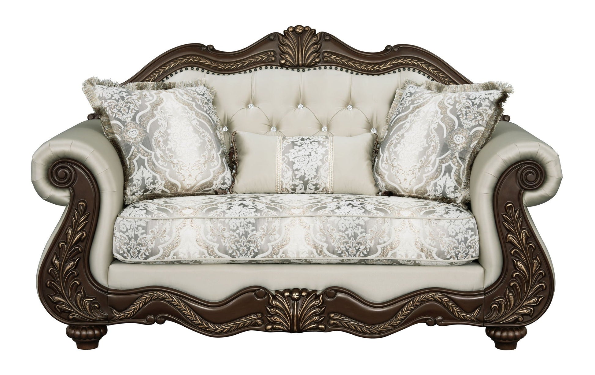 Pierce Loveseat With 3 Pillows - Beige / Cherry
