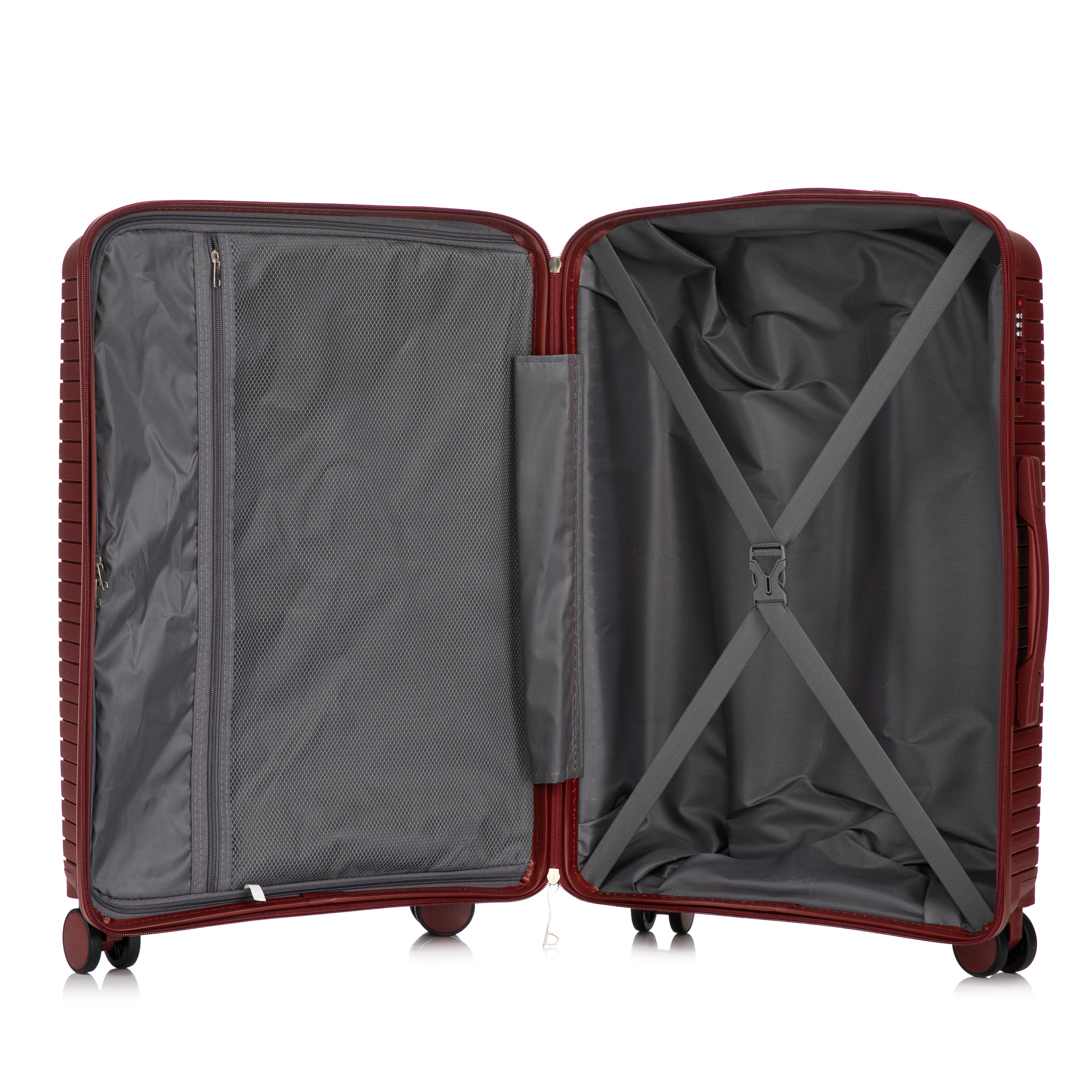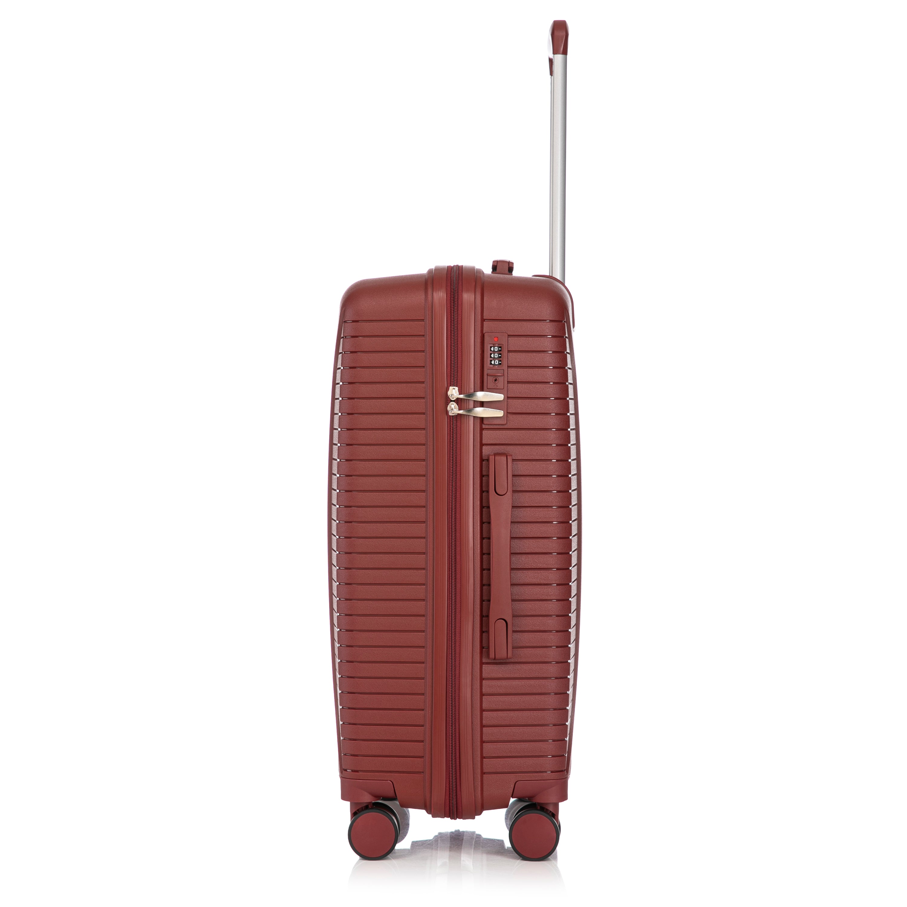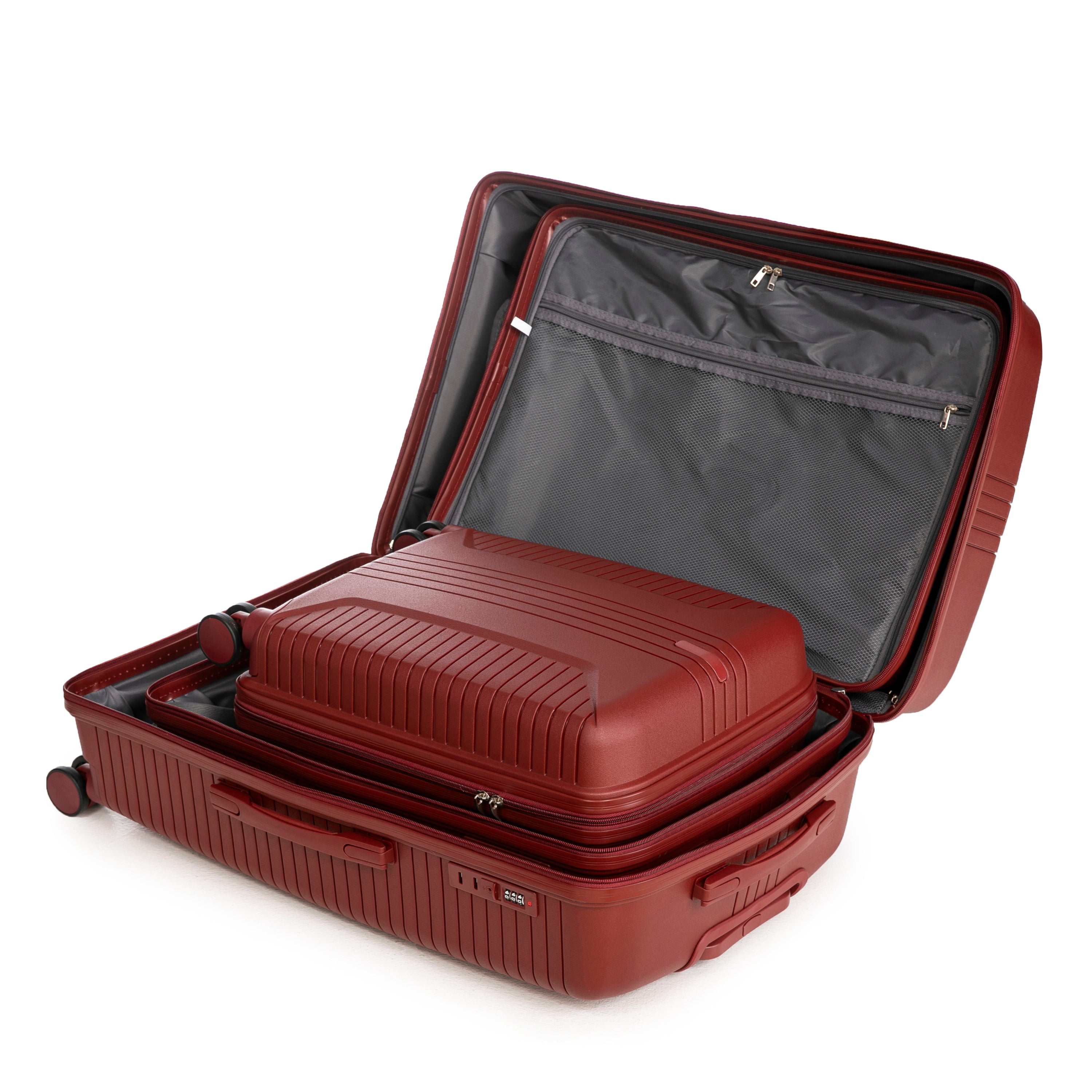 Each suitcase includes a fully lined interior with a zippered compartment, cross straps, and multiple storage layers to keep your belongings neatly organized. The low-profile top and side handles make lifting and carrying easy.