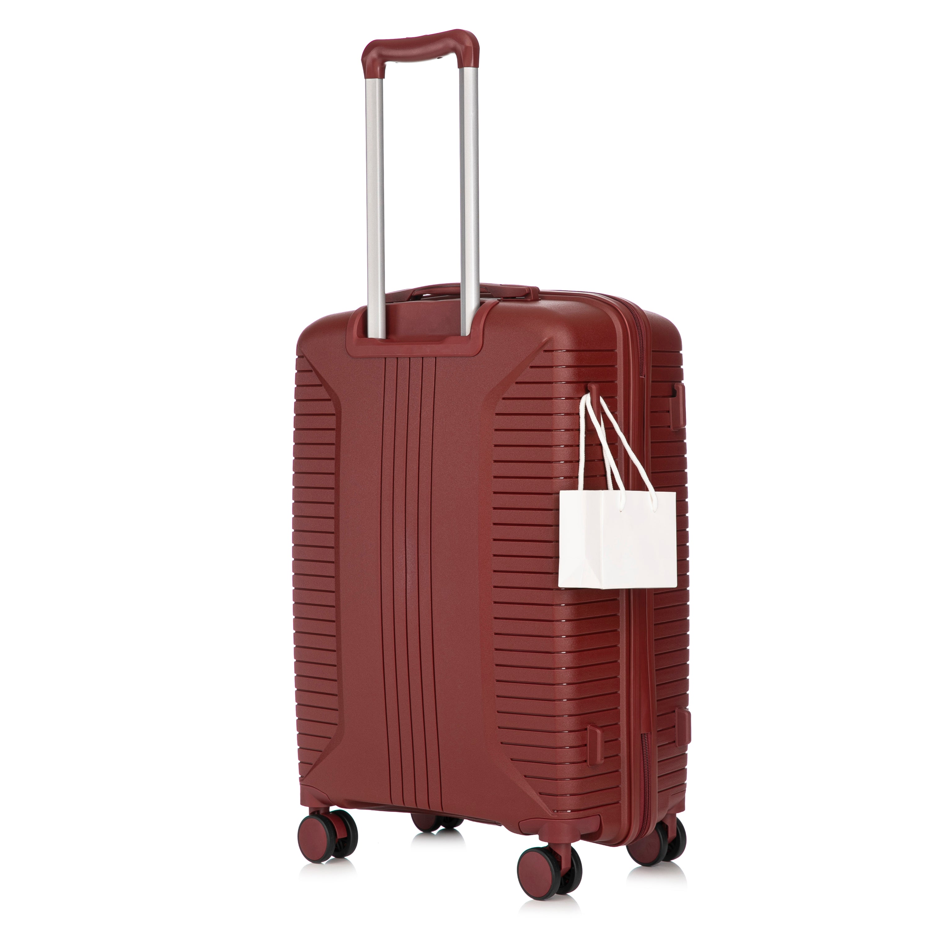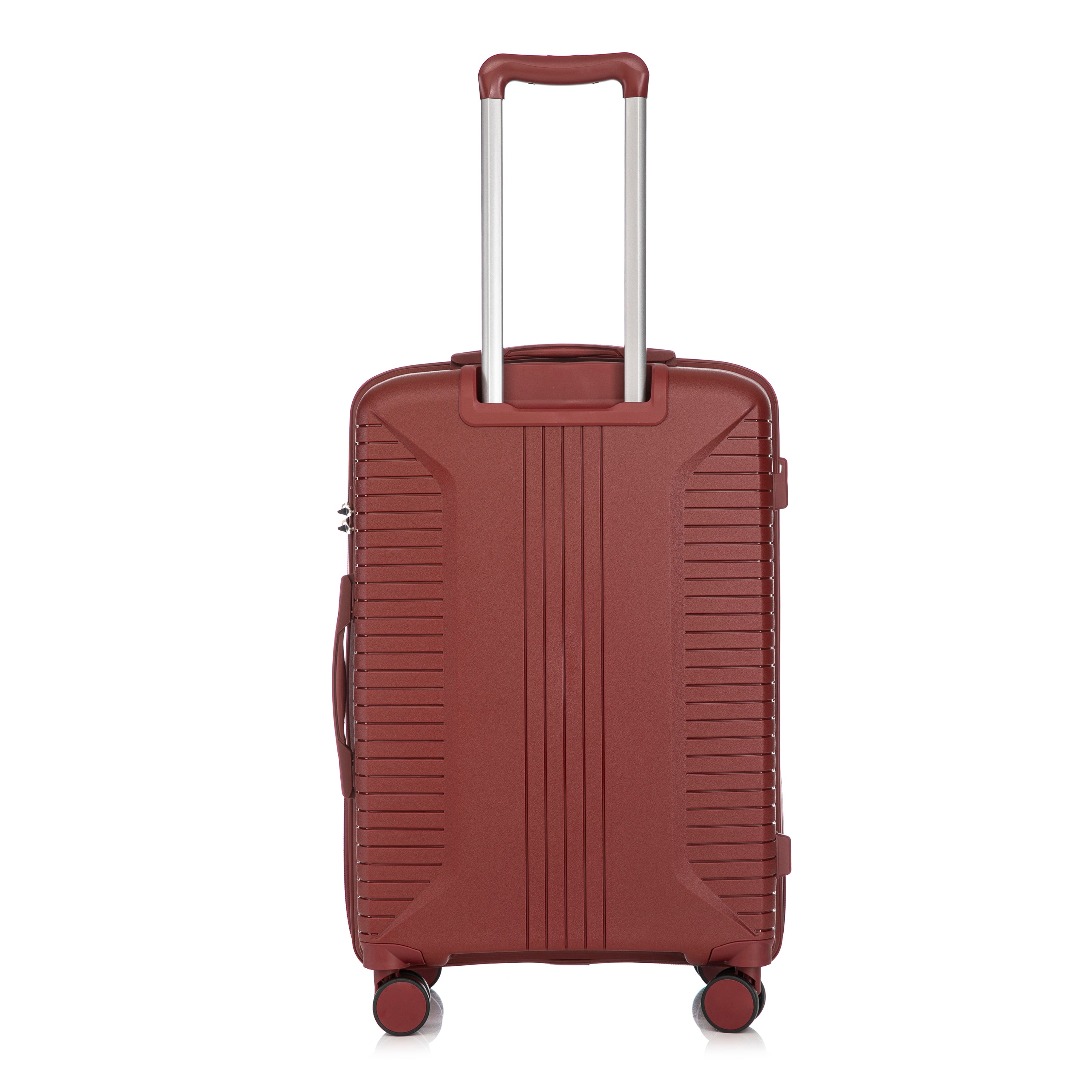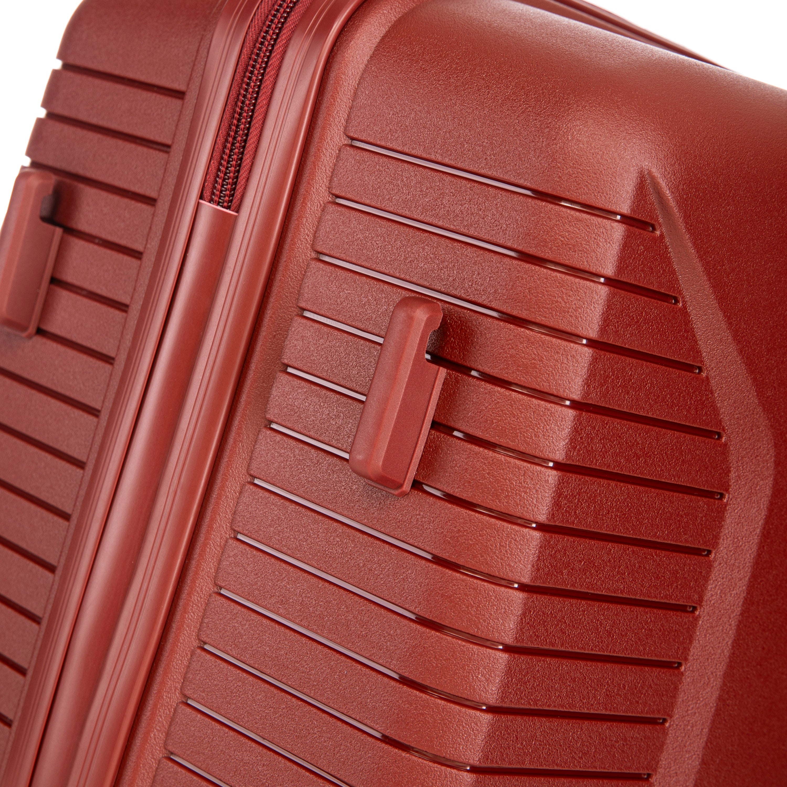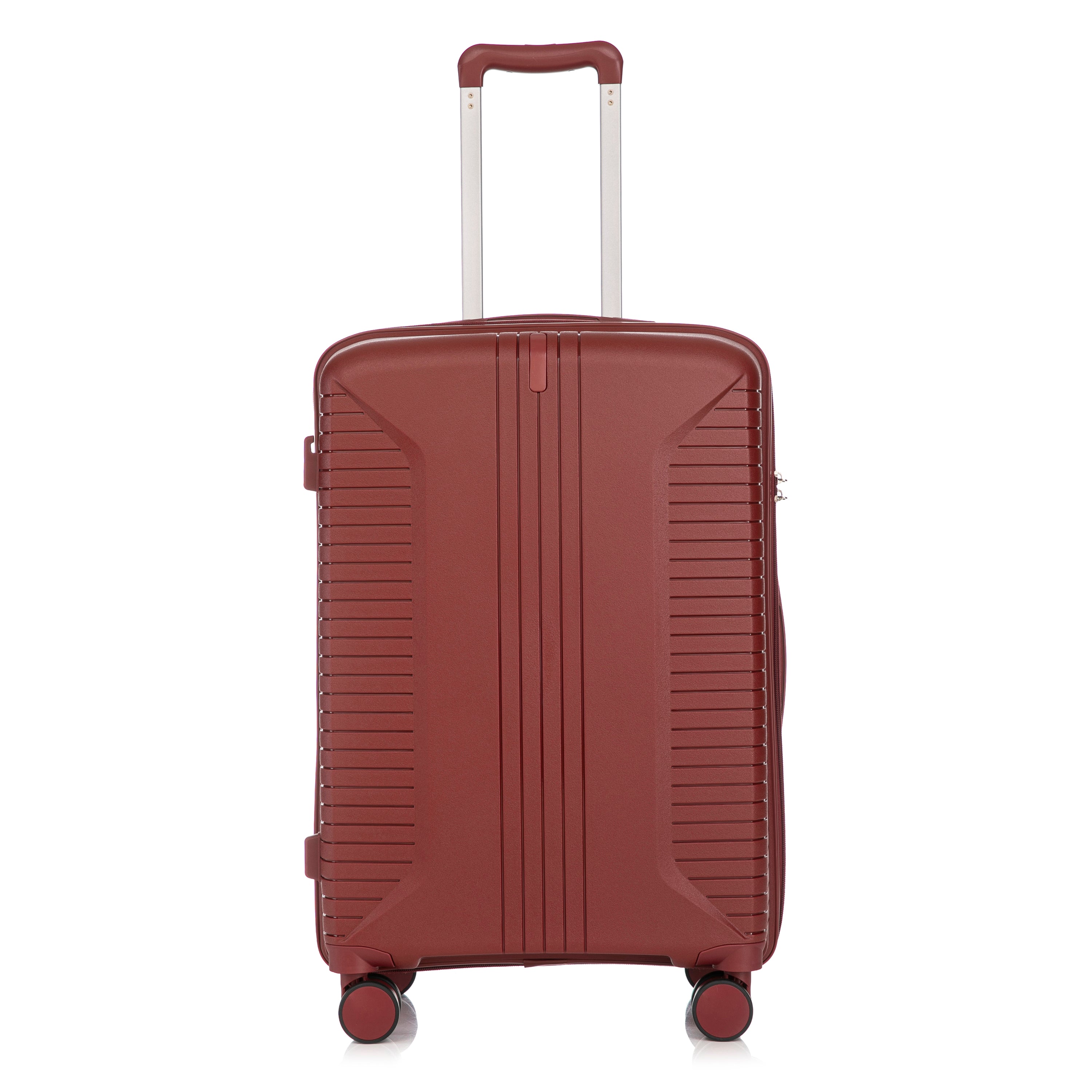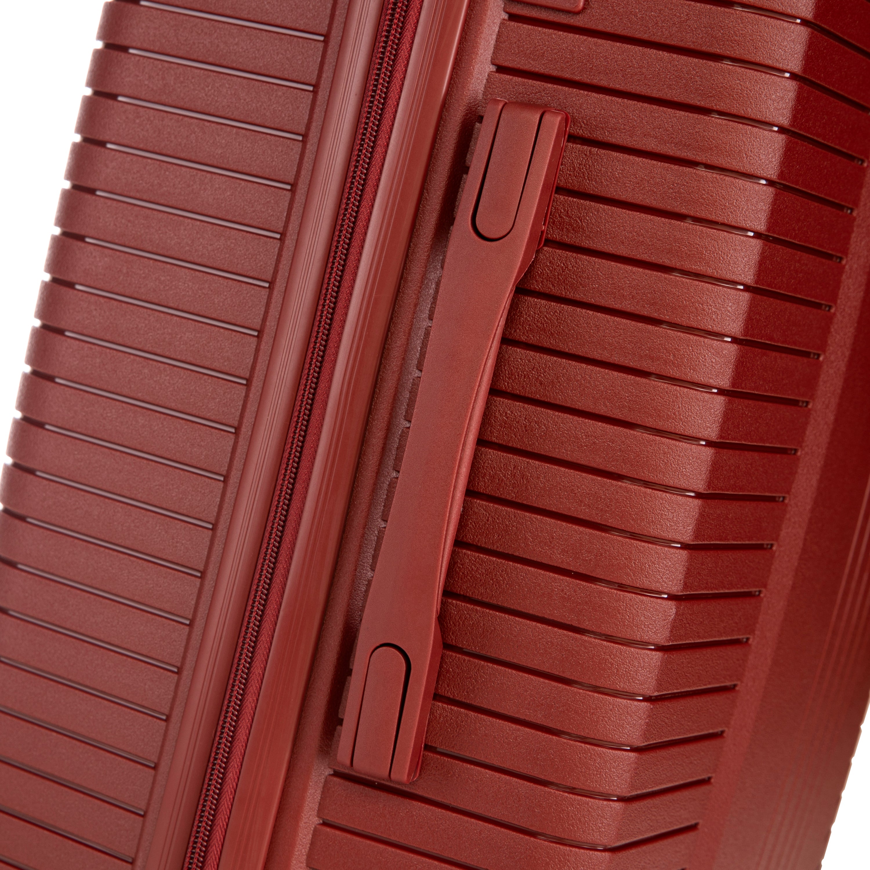 The elegant vertical stripe design adds style while increasing resistance to scratches and pressure. Each suitcase includes four molded side feet, allowing it to stand upright and stable, even when laid on its side.