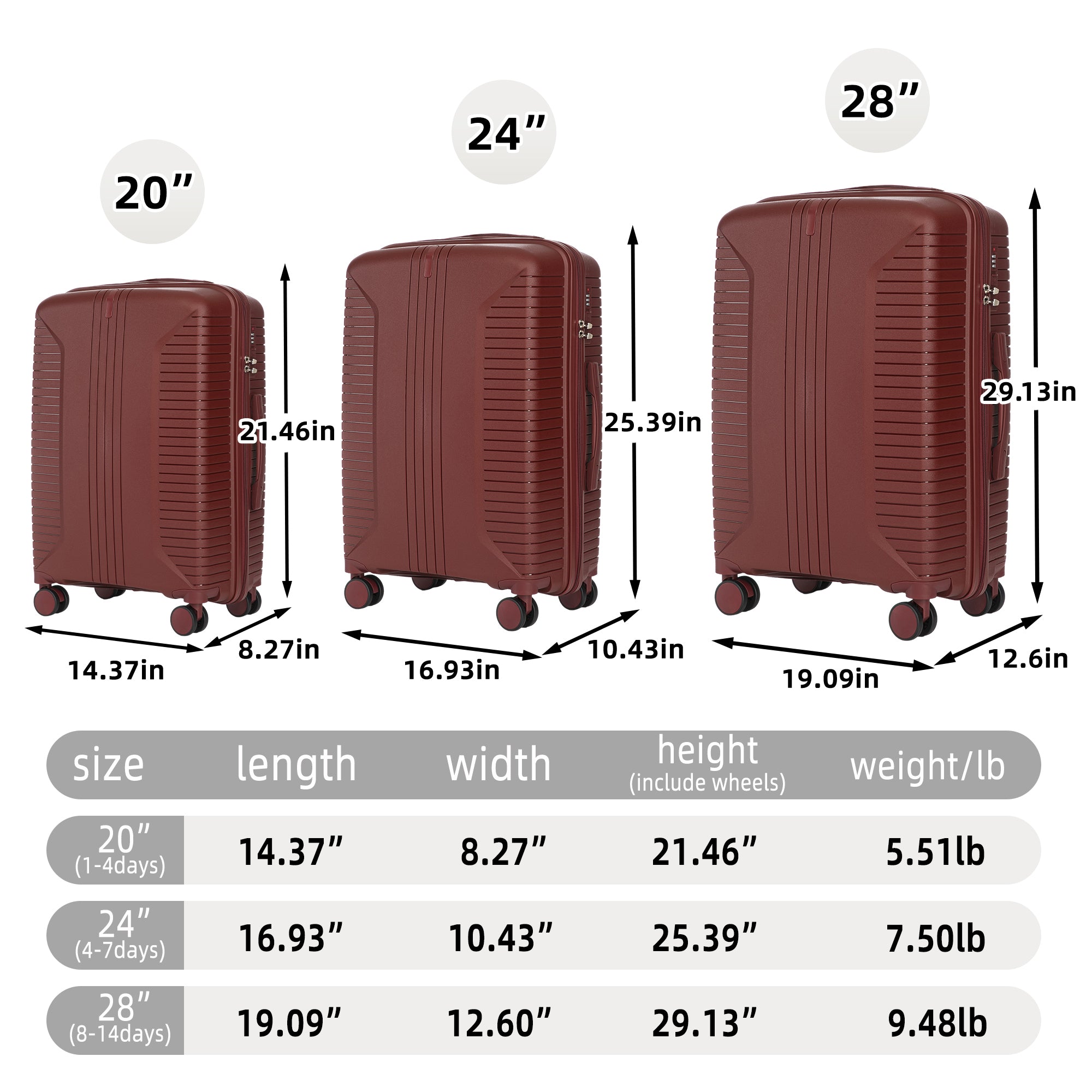 3-Piece Luggage Set – 20" / 24" / 28" ABS Spinner Suitcase with 360° Wheels & Combination Lock (Red)