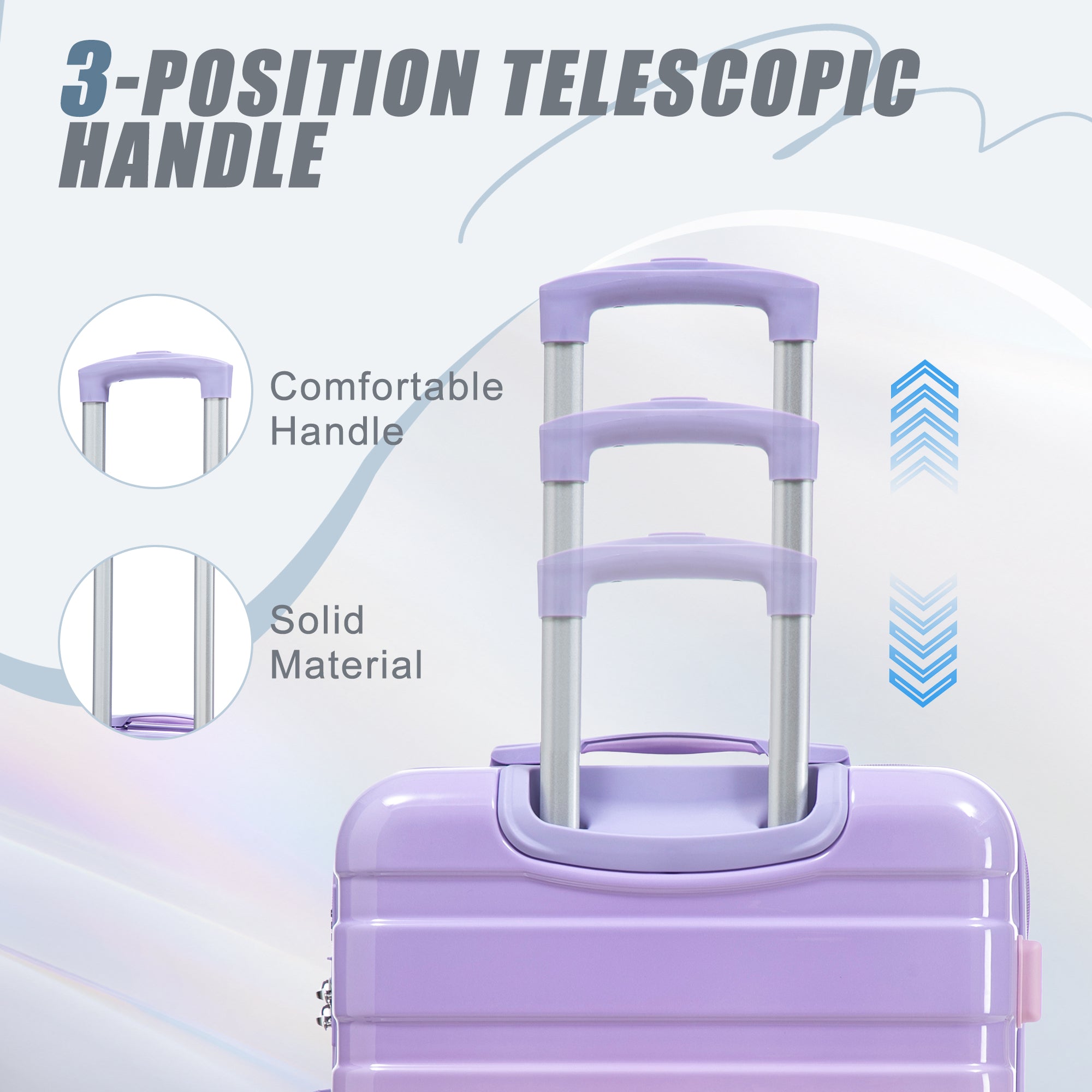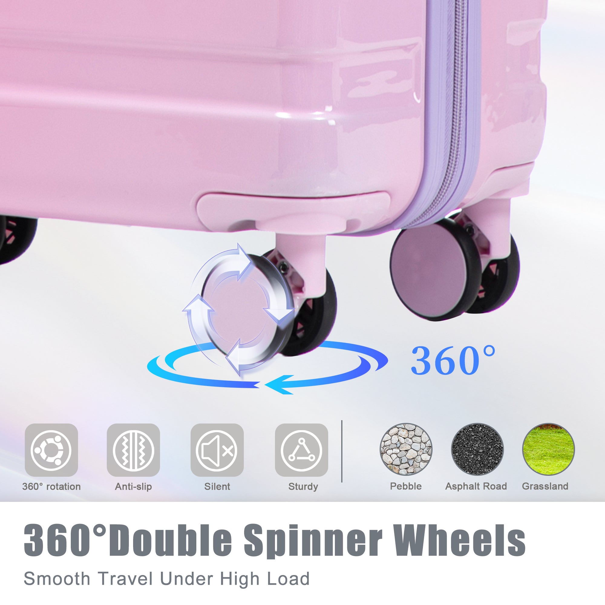 Equipped with 360° double spinner wheels, this luggage set glides effortlessly in any direction. The silent design ensures smooth, noise-free travel across airport terminals and hotel floors, while the double-row protection increases stability and load capacity.