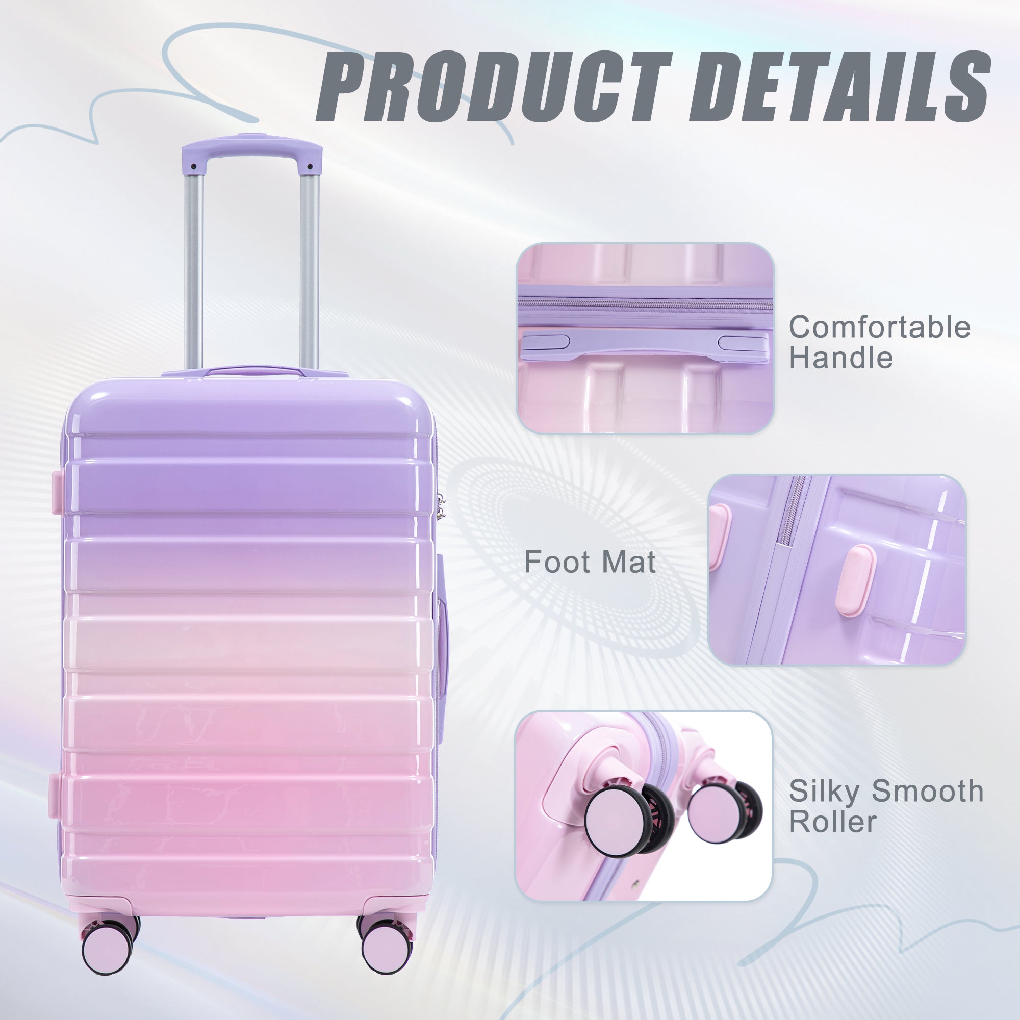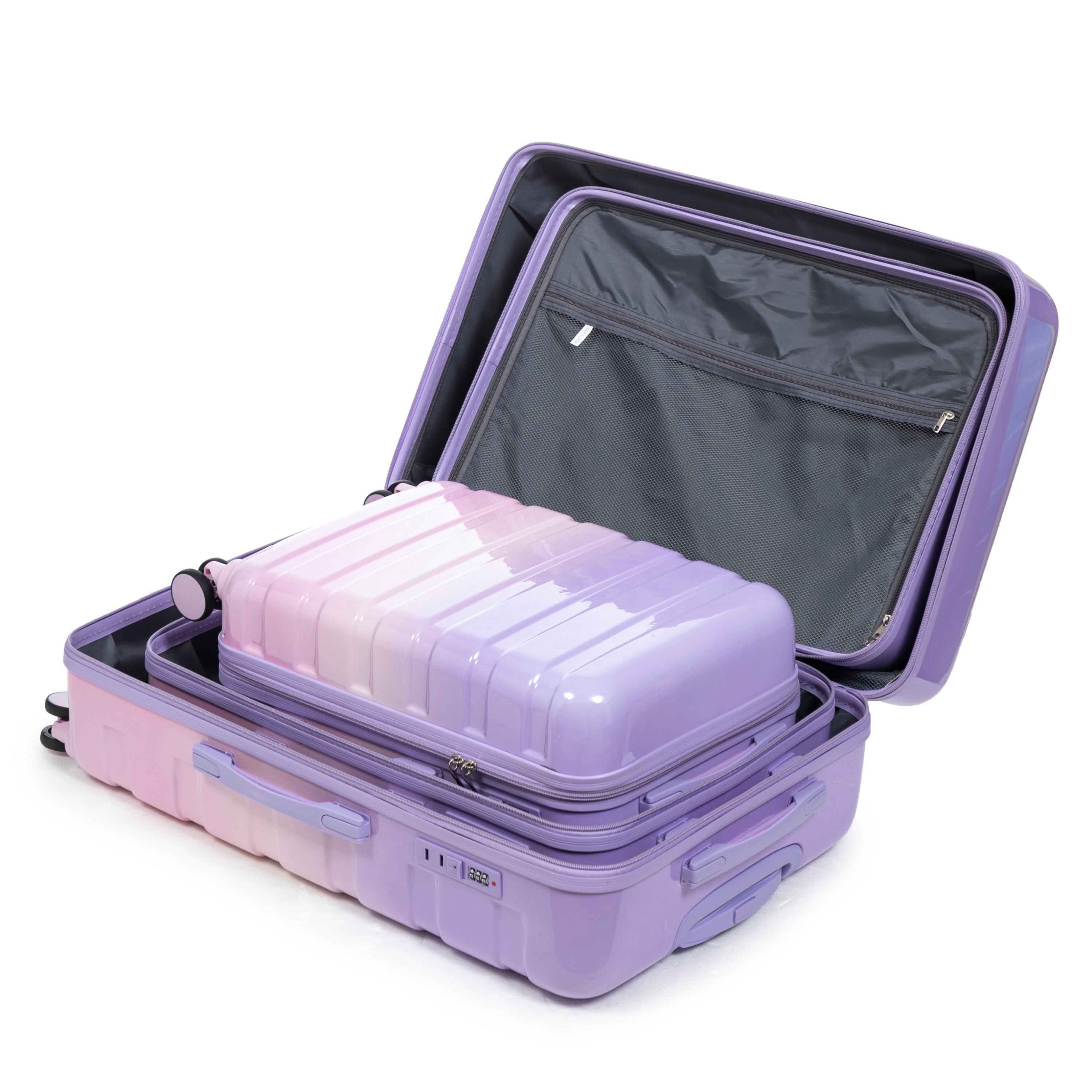 3-Piece Luggage Set – 20" / 24" / 28" ABS Spinner Suitcase with 360° Wheels & Combination Lock (Pink+Purple)