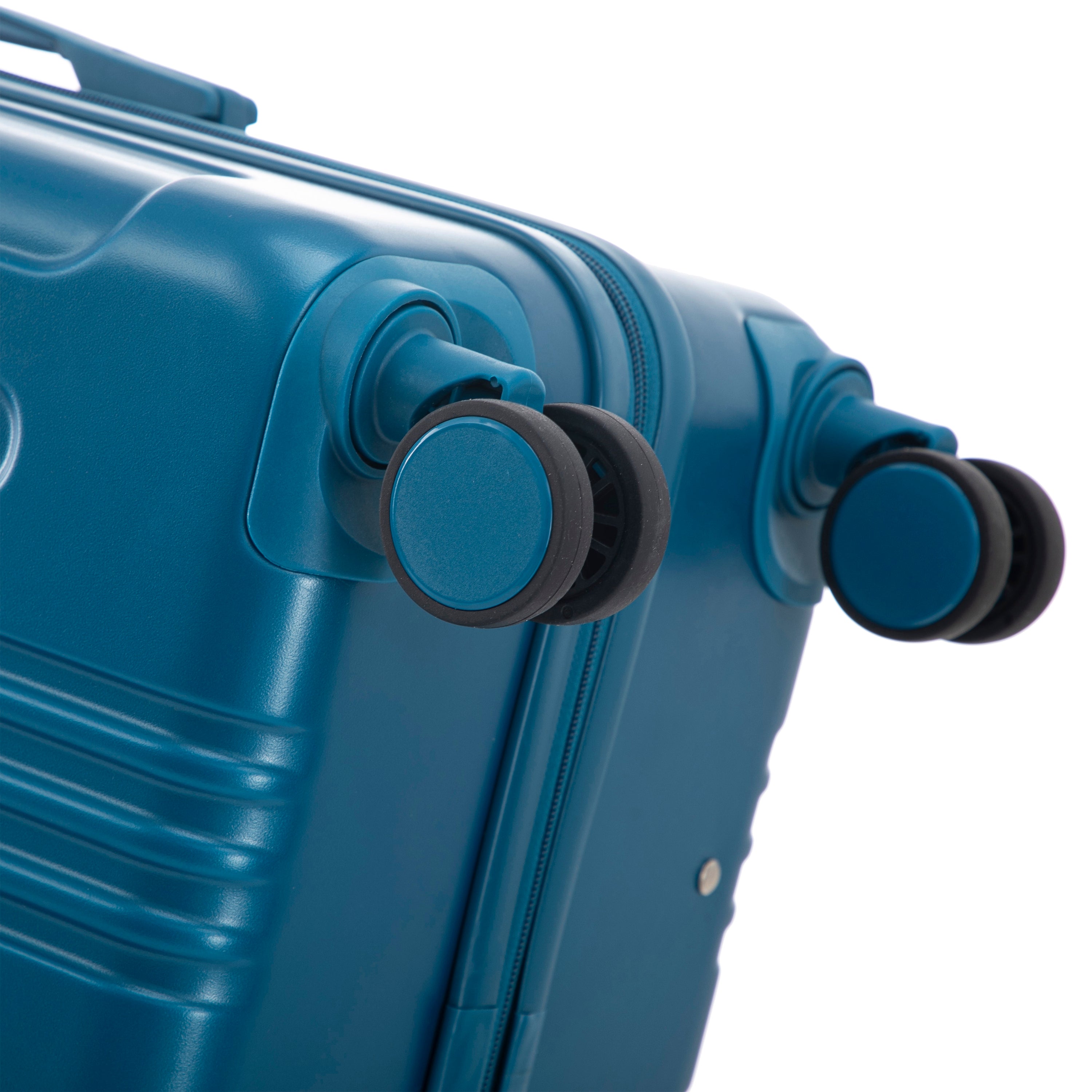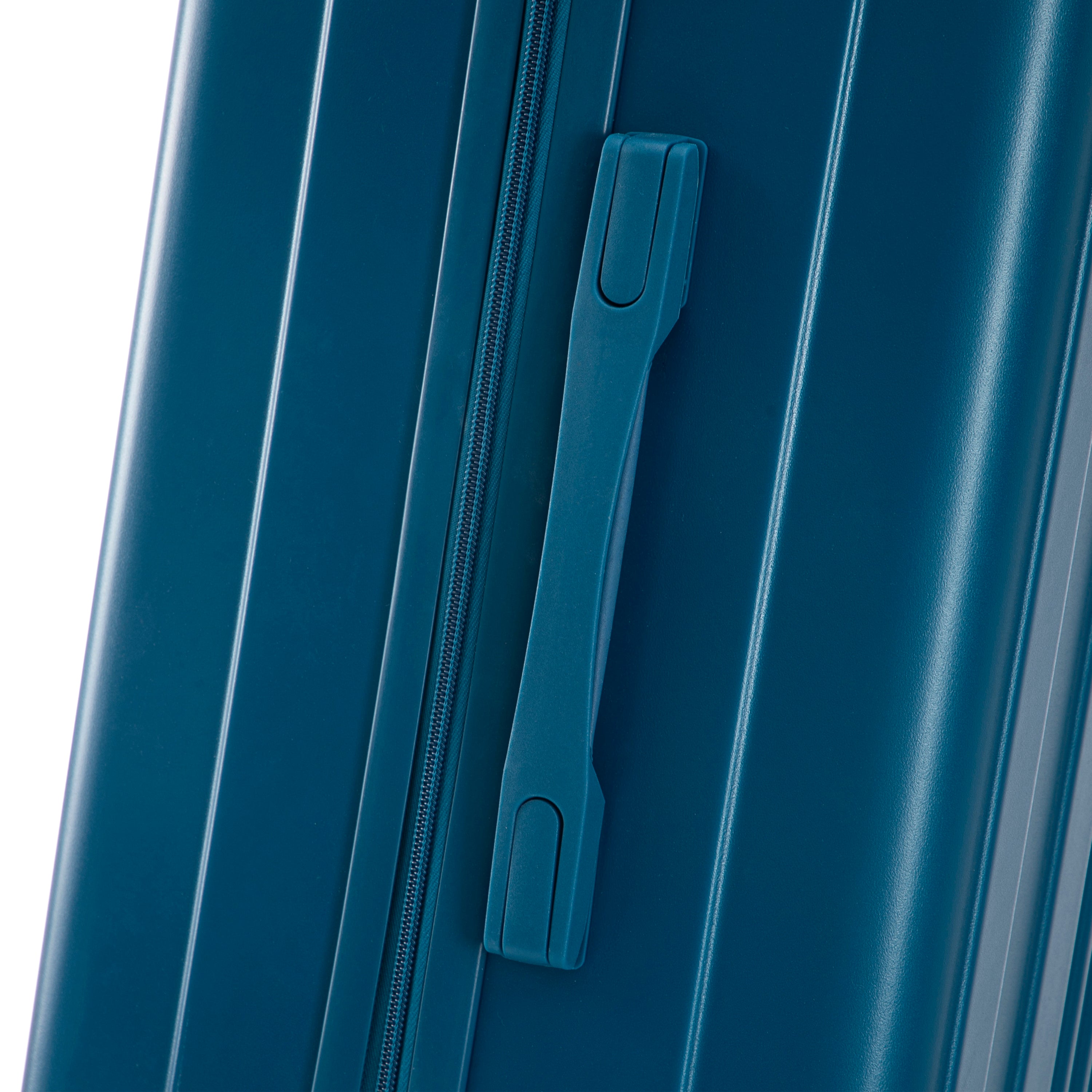 The elegant vertical stripe design adds style while increasing resistance to scratches and pressure. Each suitcase includes four molded side feet, allowing it to stand upright and stable, even when laid on its side.