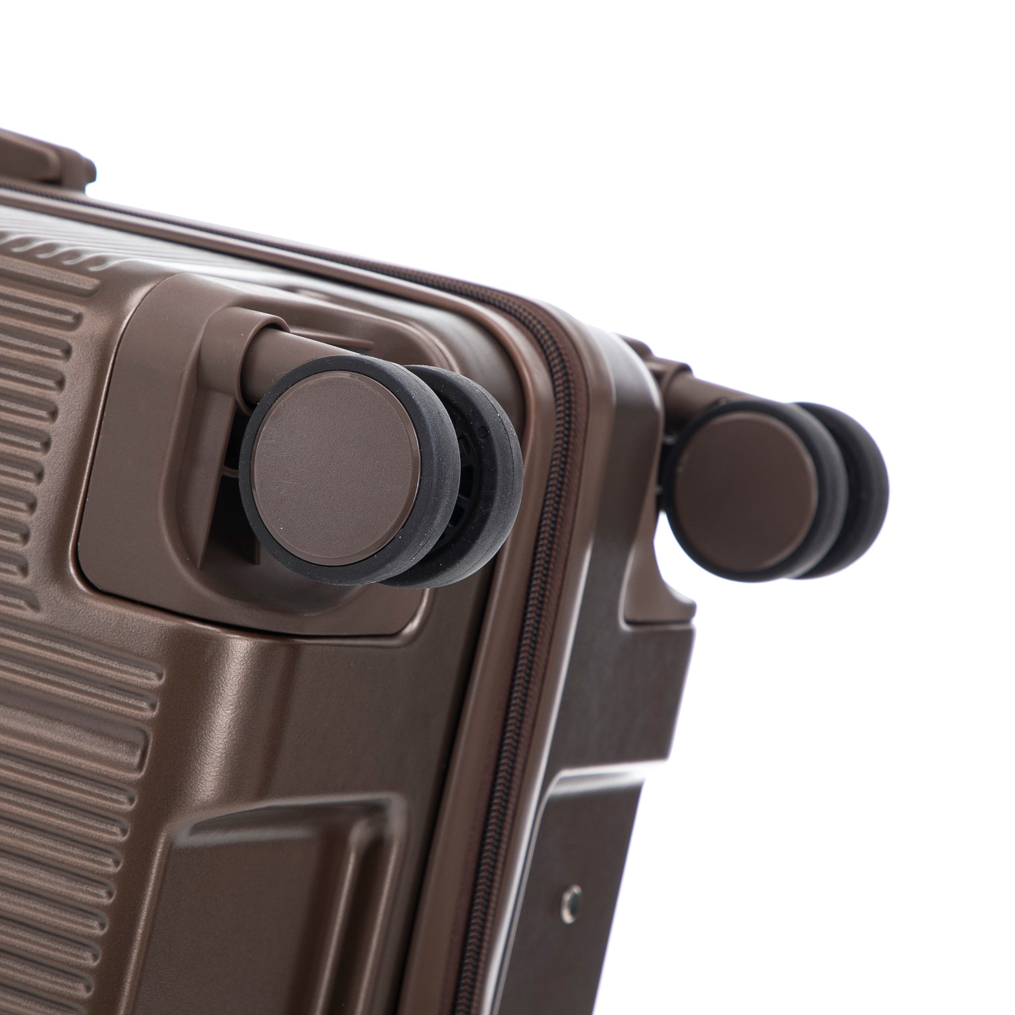 The elegant vertical stripe design adds style while increasing resistance to scratches and pressure. Each suitcase includes four molded side feet, allowing it to stand upright and stable, even when laid on its side.