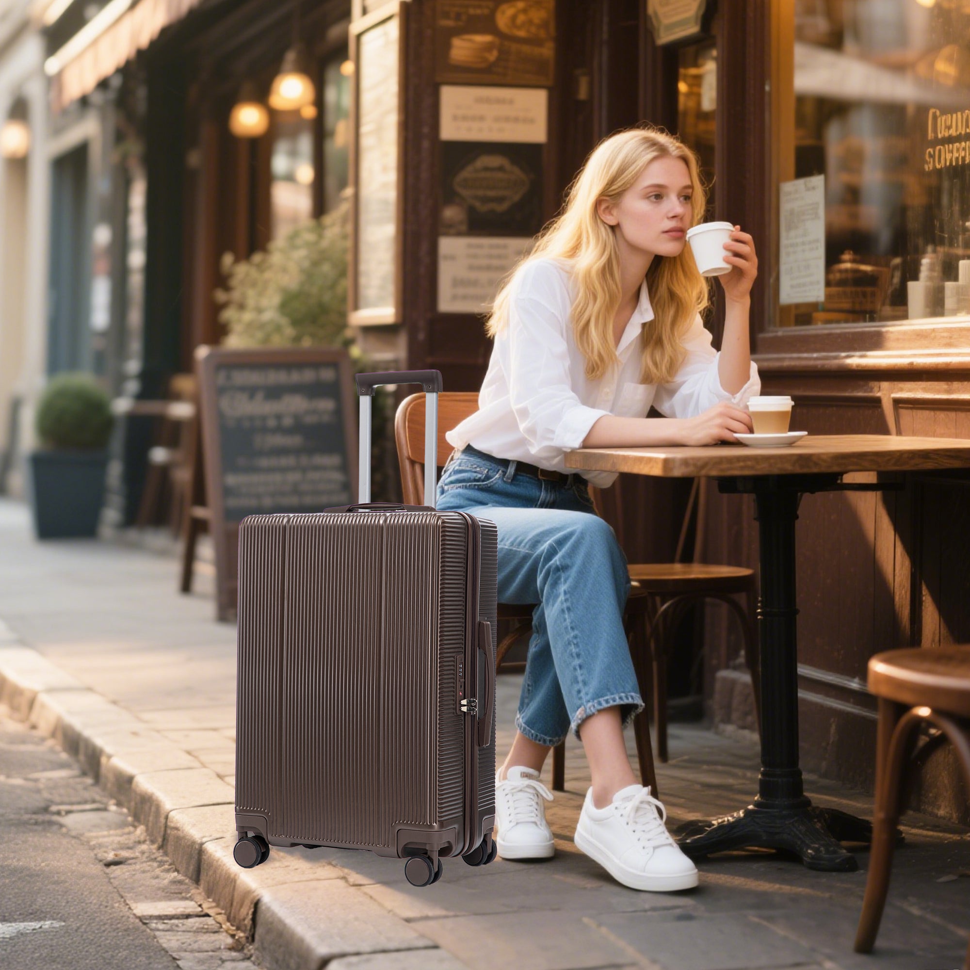 Equipped with 360° double spinner wheels, this luggage set glides effortlessly in any direction. The silent design ensures smooth, noise-free travel across airport terminals and hotel floors, while the double-row protection increases stability and load capacity.