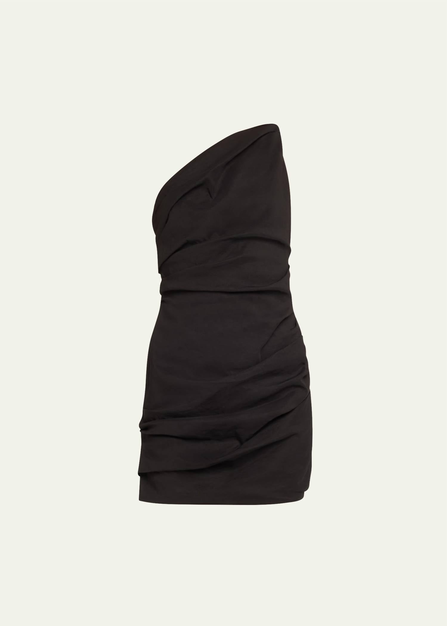 Embrace effortless elegance with the Carina Gathered One-shoulder Mini Dress by A.L.C. in timeless black. This sleeveless, off-the-shoulder dress features a chic sheath silhouette with a comfortable hint of stretch, crafted in a luxurious linen blend. Measuring 32" in length, it has a hidden side zipper closure for seamless wear and is fully lined. Made in Italy, this dress requires dry cleaning, making it a sophisticated choice for cocktail parties or New Year's Eve celebrations. 57% Linen, 40% Viscose, 3% Elastane.