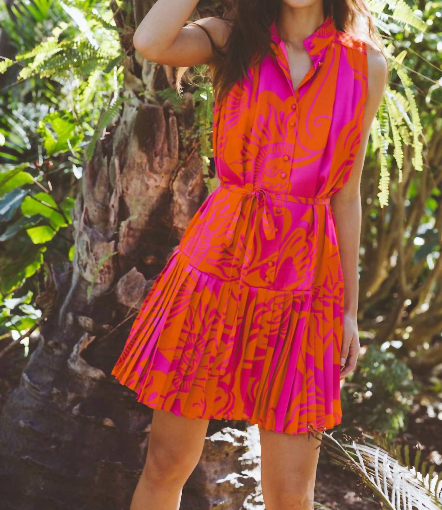 O minivestido perfeito para os meses mais quentes. Eleve seu repertório com o Vestido Bella da Alden Adair, perfeito para a transição do dia para a noite em sua vibrante cor Bloom. Este minivestido sem mangas ostenta um design estampado confeccionado em 100% poliéster, com uma charmosa saia de cintura baixa em camadas e um cinto combinando. Feito em Poly Charmeuse, oferece estilo e conforto com seu fecho de botão. As instruções de cuidado podem ser lavadas à máquina com água fria e secas em temperatura baixa.