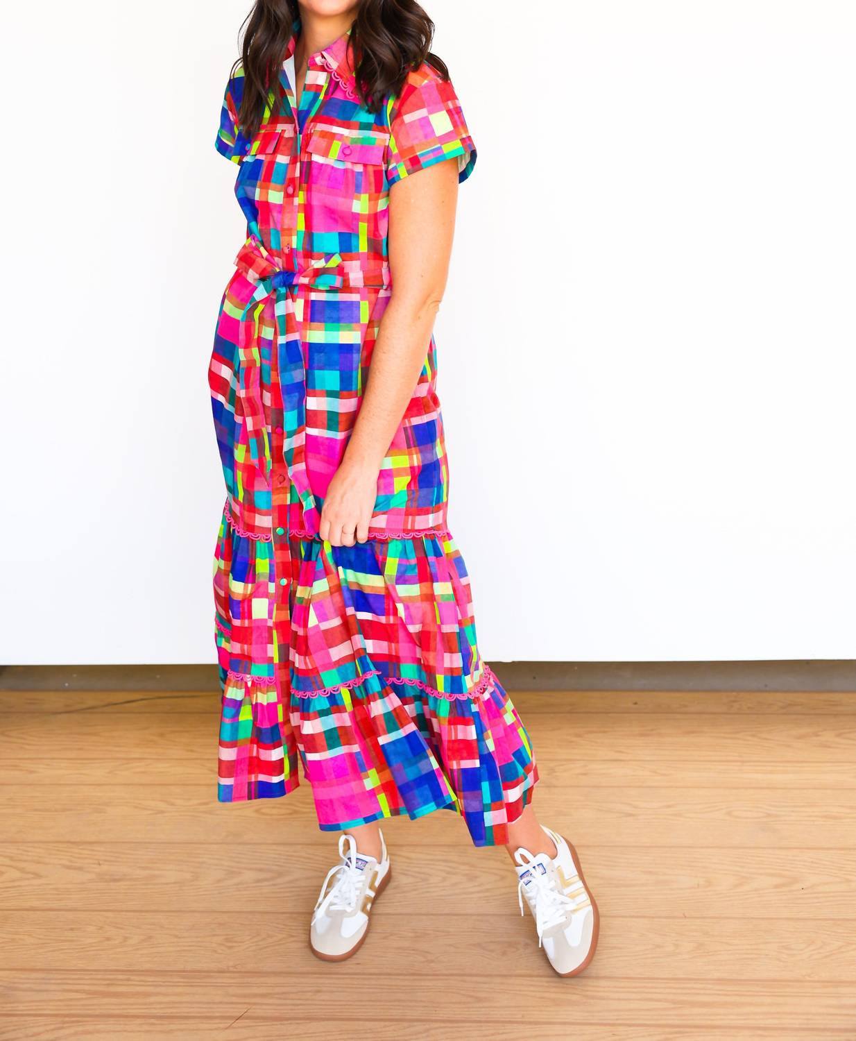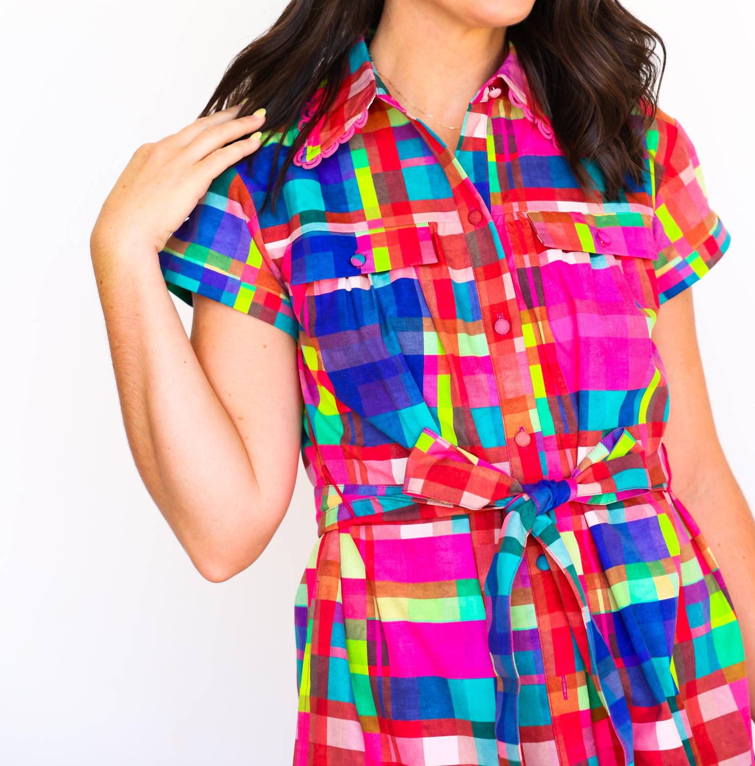 Elevate your wardrobe with the Women's Rachel Dress by Alden Adair, designed for style and versatility. This patterned maxi dress features short sleeves and a button-down collar neckline, complete with a matching adjustable belt for a flattering fit. Made from 100% polyester in a poly gingham material, it offers comfort and durability. Care instructions include machine wash cold and tumble dry low.