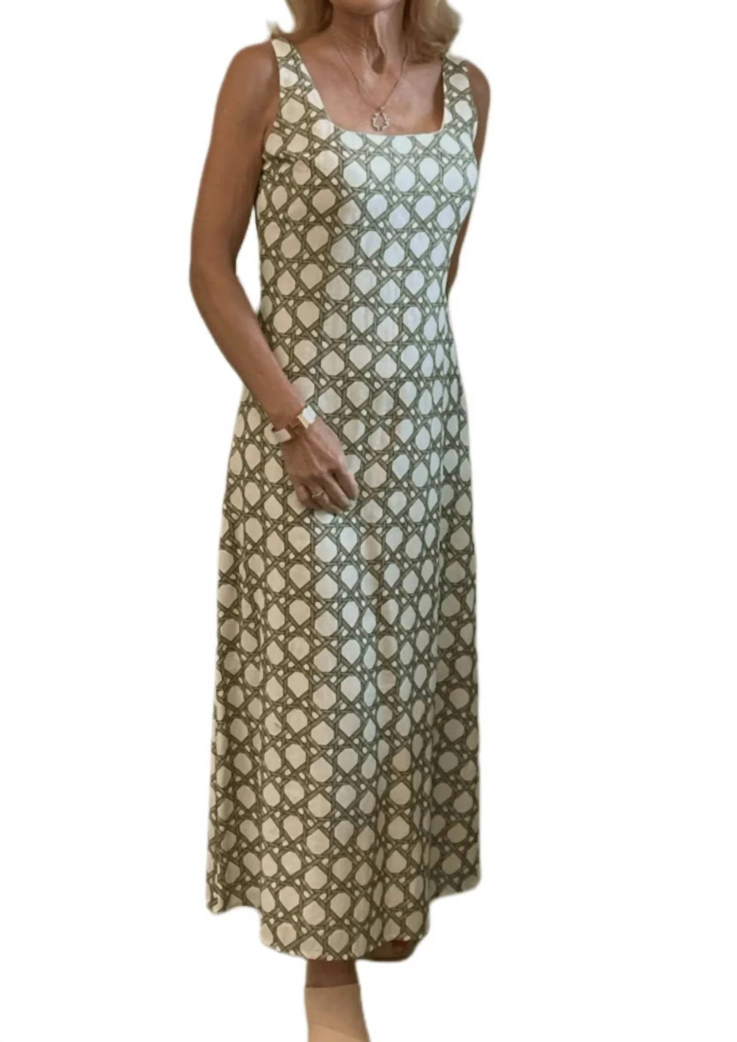 Elevate your wardrobe with the Minnie Midi Dress by Anna Cate, a stunning piece in the vibrant Trellis hue. This sleeveless sheath dress showcases a modern squareneck and is crafted to a chic midi length, perfect for summer occasions. Originating from Anna Cate's maximalist trend, this patterned dress features a convenient zip closure for an elegant fit. Care for this exquisite garment by hand washing and line drying to maintain its sophistication.