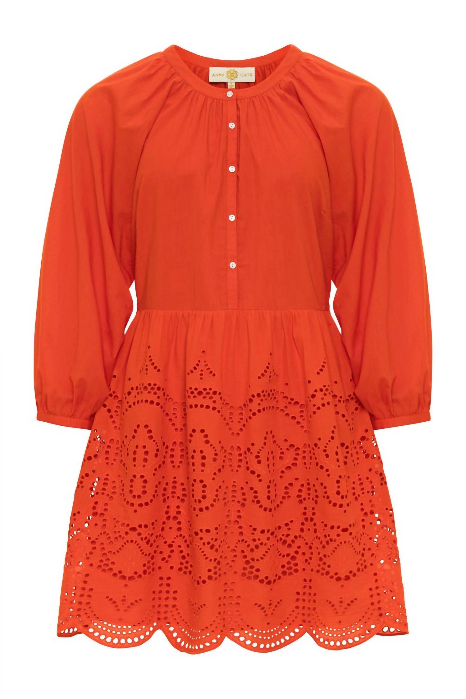 Introducing the Georgie Mini Dress by Anna Cate, crafted in a vibrant Cherry Eyelet for a standout look. This minimalist shift dress features a crewneck and long sleeves, offering a refined silhouette without pockets. Made from quality cotton, it highlights a solid pattern perfect for any anniversary or spring event. The dress provides a classy pull-on closure and requires hand washing with line drying for care.