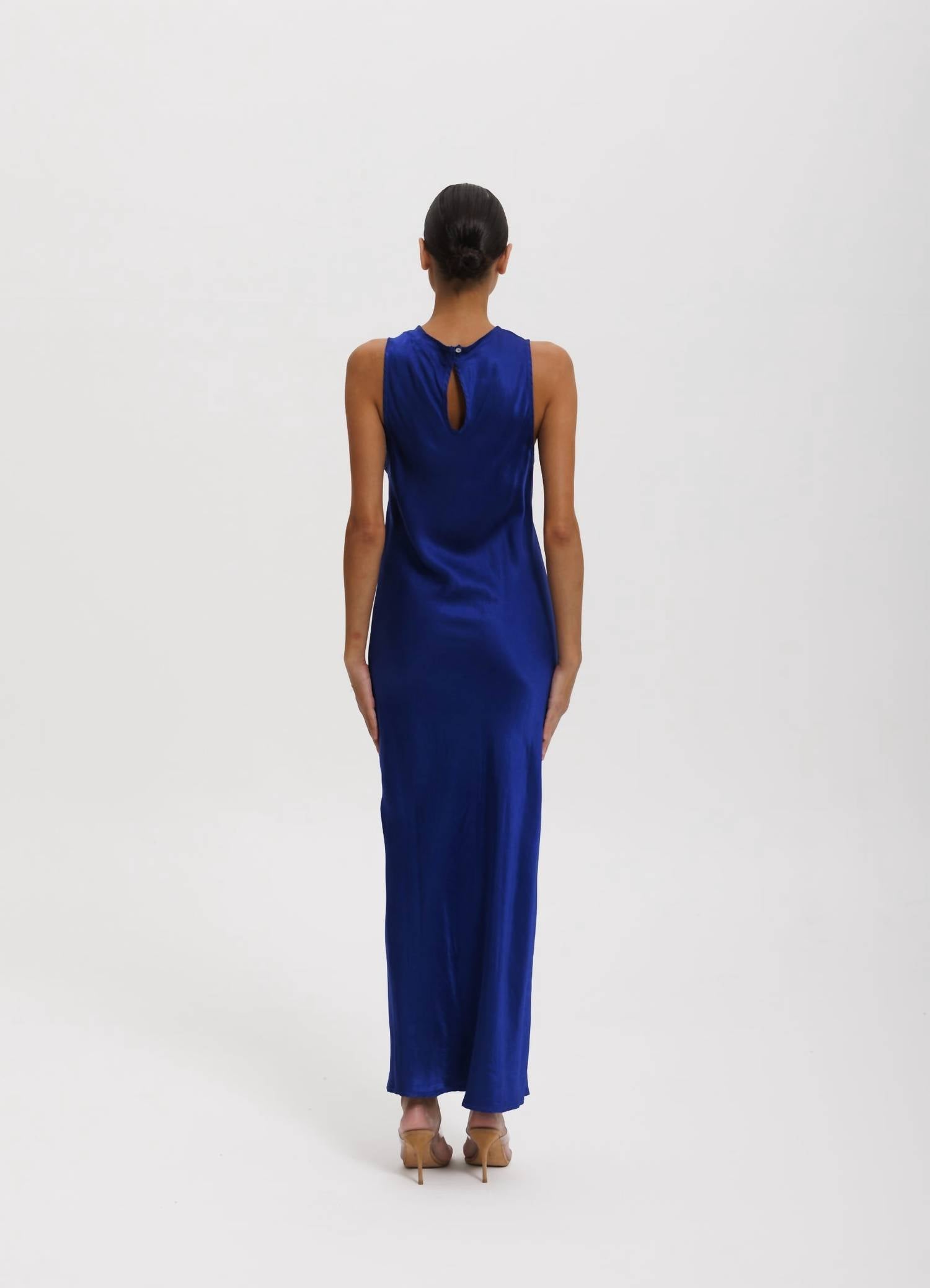 The perfect length dress does exist. Introducing the New York Midi Dress by CALi DREAMiNG, a sophisticated choice for any dinner party. Crafted with a luxurious blend of Cupro and Tencel, this sleeveless shift silhouette embodies the essence of quiet luxury in royal blue. Featuring a convenient button closure and crewneck design, this solid dress effortlessly combines elegance and comfort. Care Instructions: Hand wash to maintain the exquisite fabric quality.