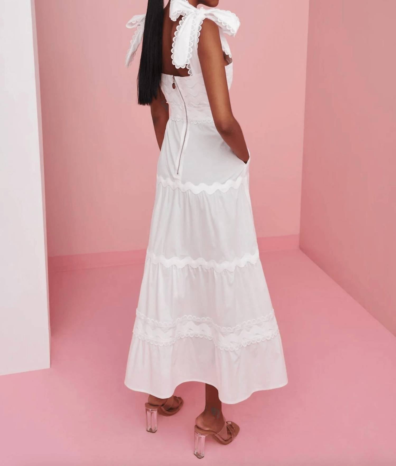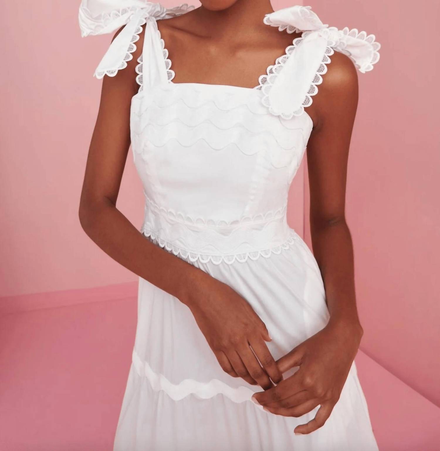 Style this maxi with your favorite statement necklace and sandals for the perfect look. Introducing the Jade Sleeveless Dress by CELiA B, a chic addition to your wardrobe perfect for spring and Thanksgiving events. This white, A-line maxi dress features a V-neck and delicate embroidery that embodies a fun and maximalist style. Crafted from a blend of 79% cotton, 18% nylon, and 3% spandex, this piece offers comfort and elegance. Care for this dress is simple with a zip closure and a recommendation to hand wash.