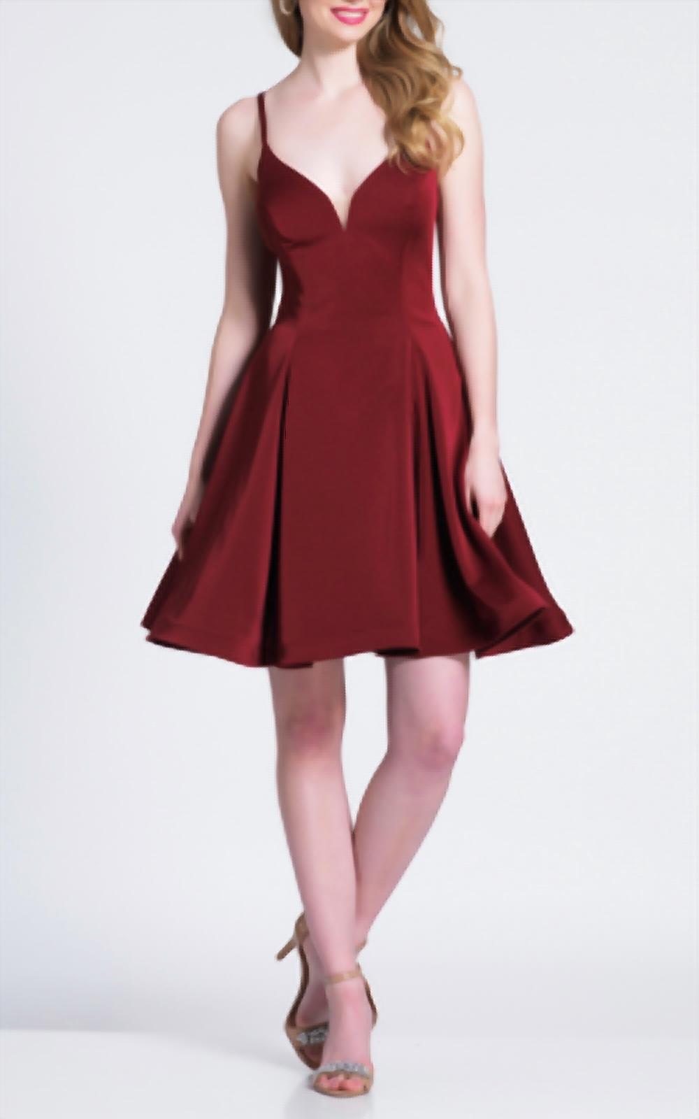 Just add slides or mules and you are good to go. Dave + Johnny Red cocktail dress. Back zipper closure