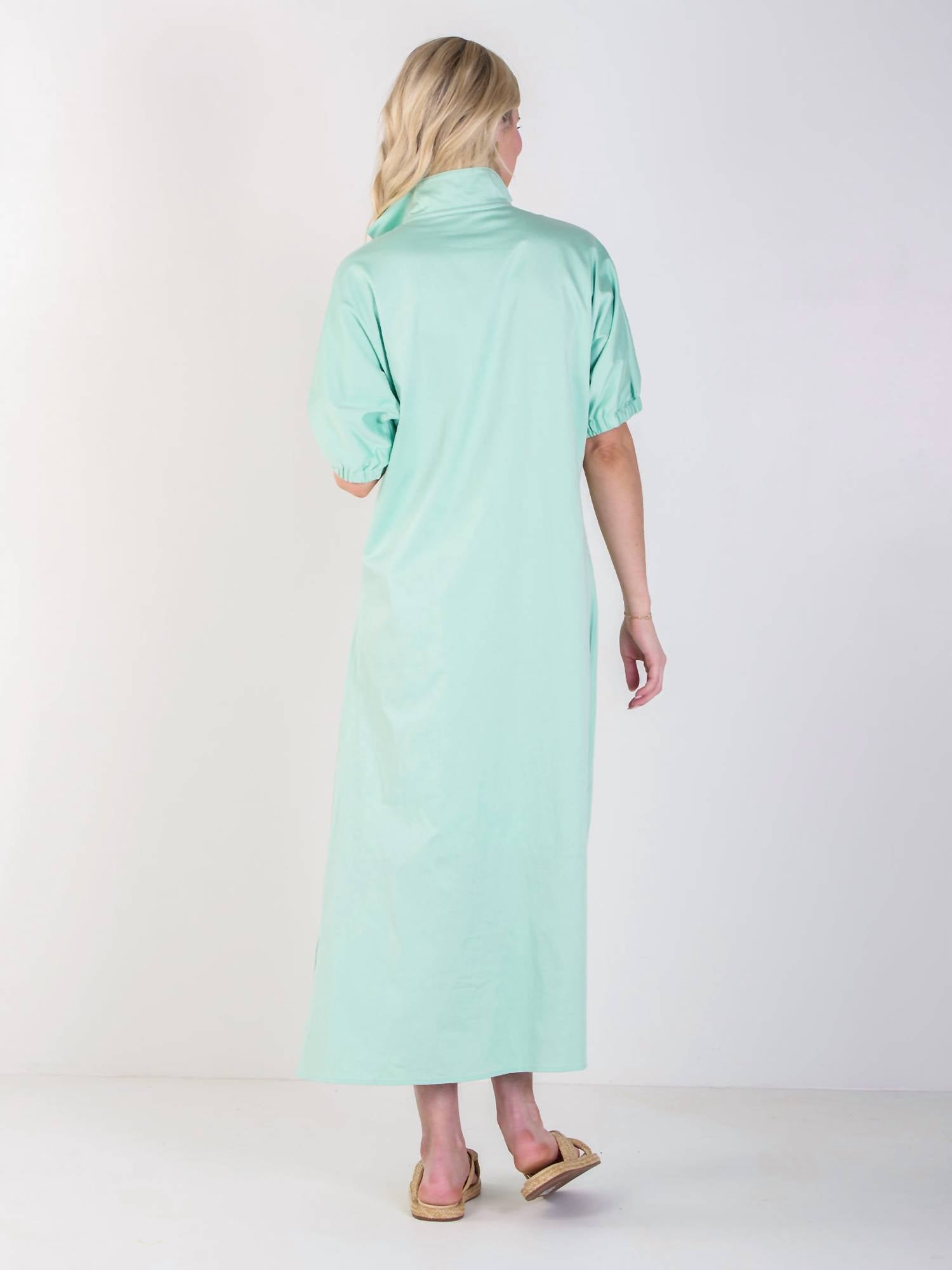 Quem não ama um bom vestido longo? Este você vai usar em todas as estações. O Vestido Maxi Poppy da Emily McCarthy é a sua peça essencial para as férias, oferecendo estilo e conforto em Verde-Névoa. Com mangas dolman elásticas soltas na altura dos cotovelos, este modelo descontraído em corte A é confeccionado em uma mistura de algodão fresco para um toque de praticidade. Composição: 98% algodão, 2% elastano com forro 100% poliéster. Fecho: Puxe para vestir. Cuidados: Lavar à máquina em ciclo delicado com água fria e sabão neutro; secar no varal para manter a cor e o formato. Ideal para aqueles passeios minimalistas de primavera, este vestido de cor sólida mantém você elegante sem esforço.