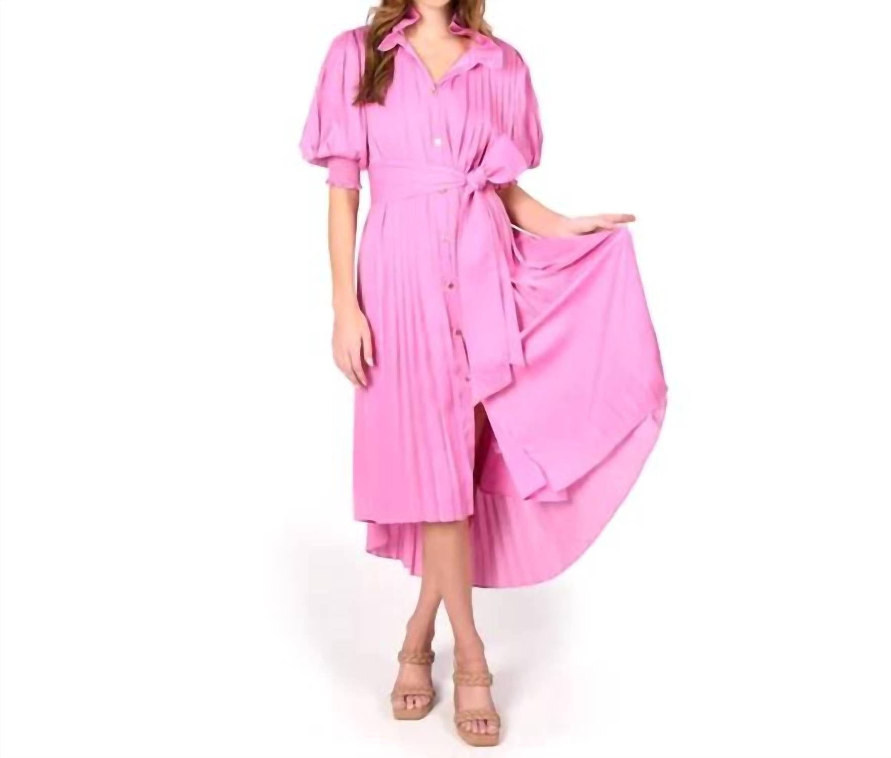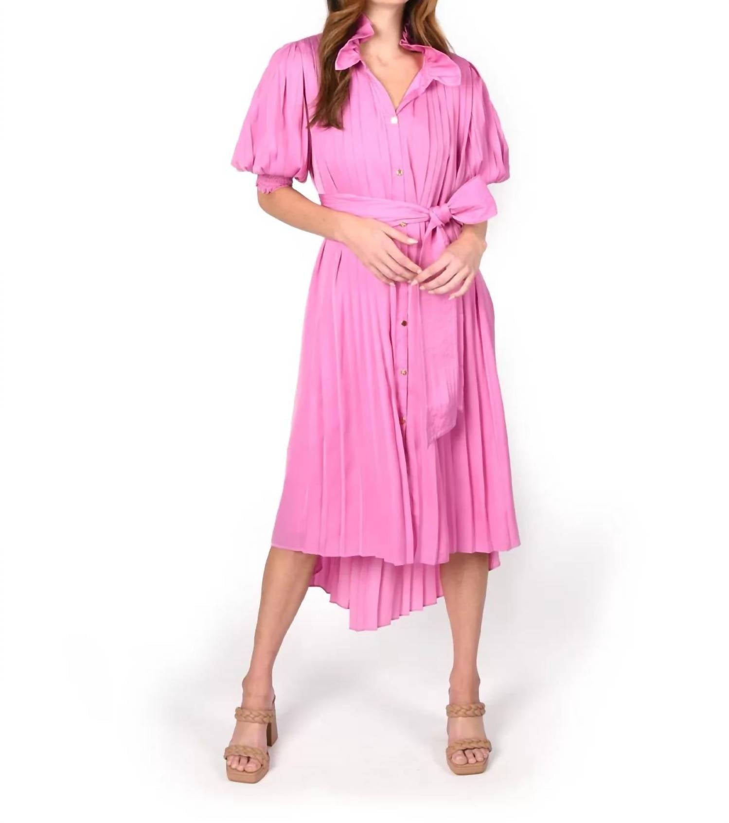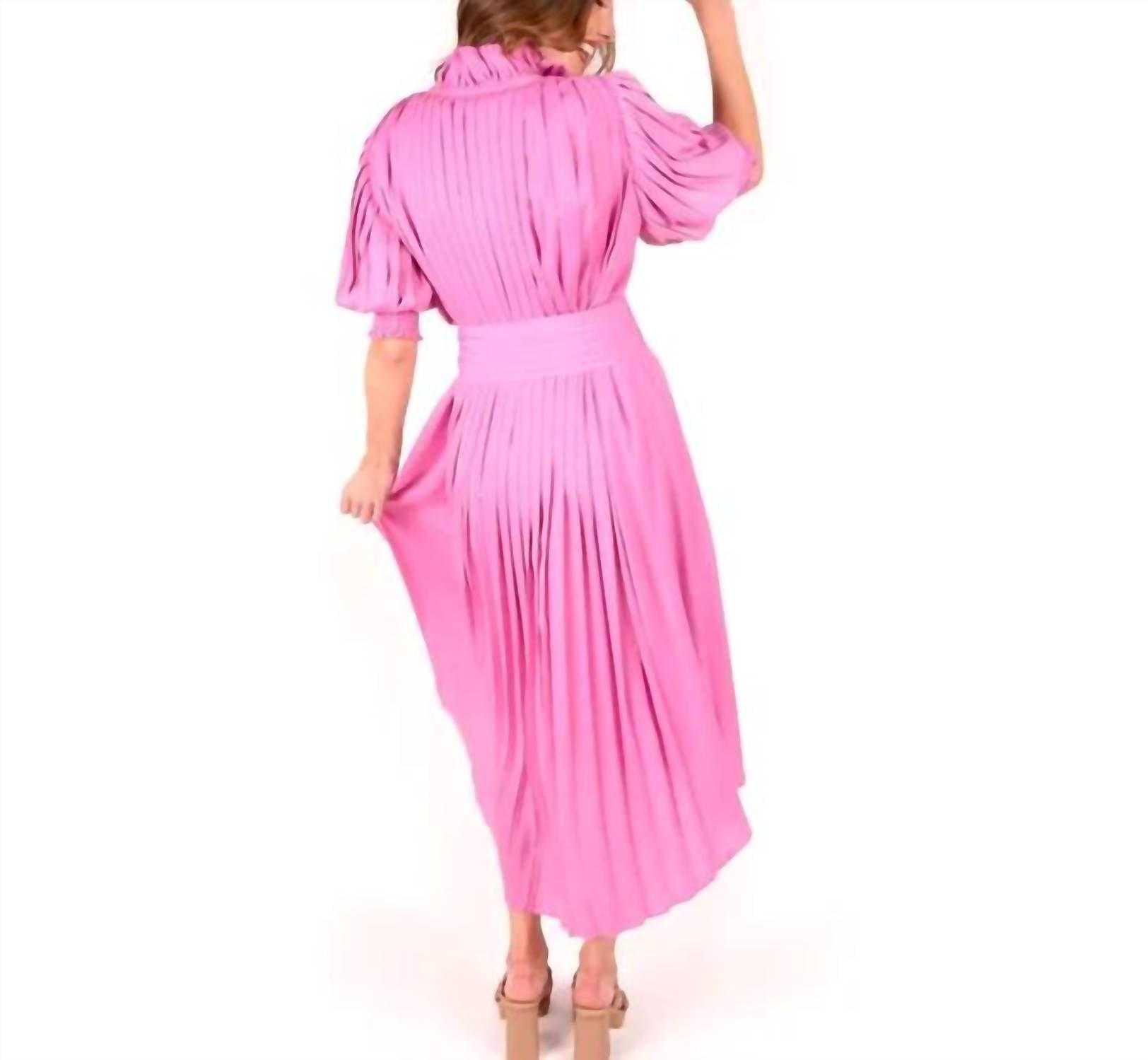 Um vestido midi tão versátil que suas opções de uso são infinitas. O Vestido Midi Rowan, de Emily McCarthy, é uma escolha deslumbrante para casamentos, confeccionado em um sofisticado tom malva-ópera. Com mangas curtas e gola elegante, o vestido personifica o luxo discreto com sua silhueta sólida em corte A. Apresenta detalhes plissados complexos com acabamentos smock refinados e bainha elegante Hi/Lo. Fechamento: Botão. Instruções de cuidado: Lavagem a seco somente.