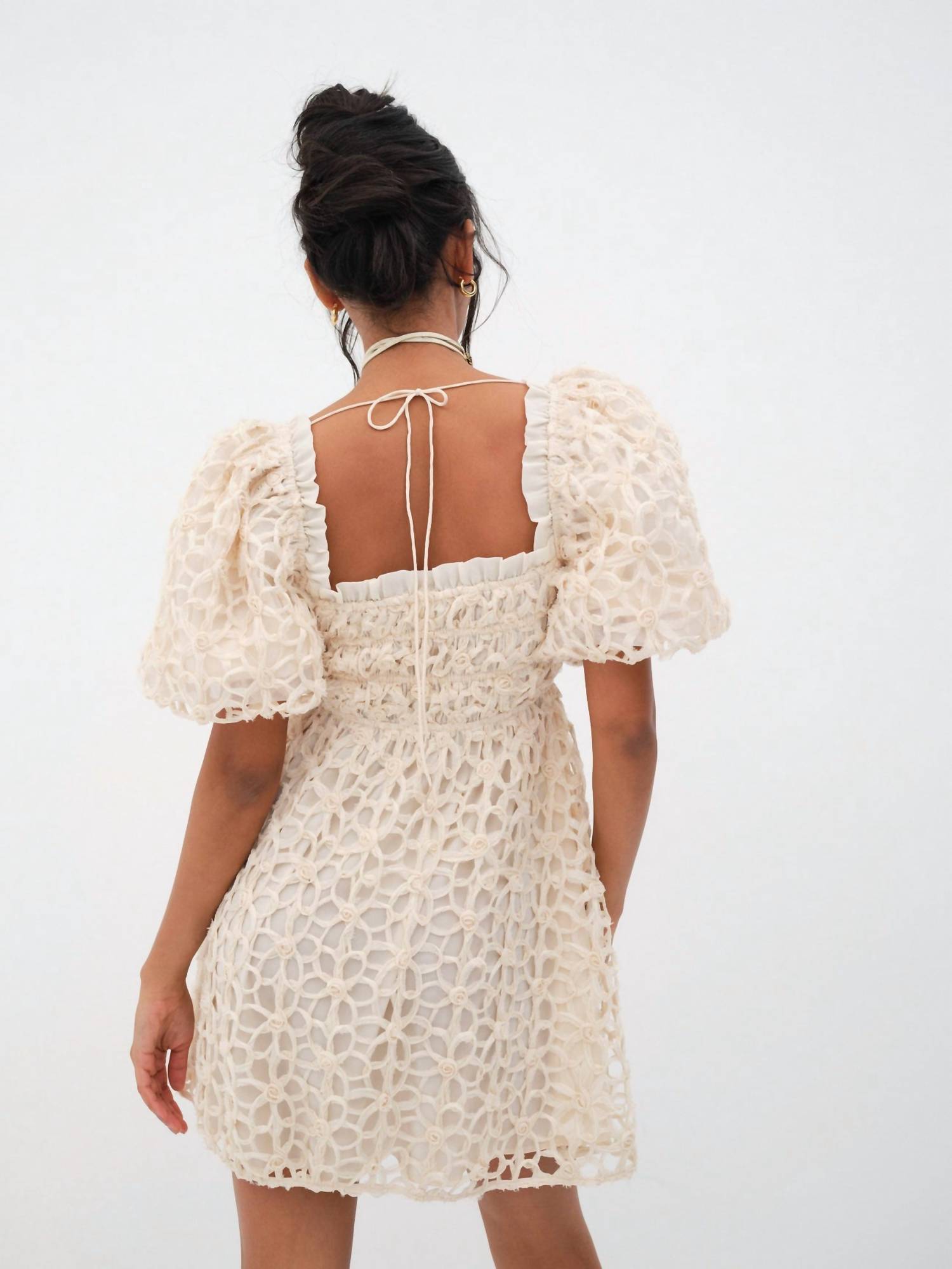 Um vestido curto e arejado para os dias mais quentes. Eleve seu guarda-roupa de primavera com o Vestido Mini Brooke da For Love & Lemons, uma escolha dos sonhos para qualquer festa de fim de ano. Este vestido apresenta mangas curtas bufantes e decote quadrado para um toque doce e feminino. Confeccionado em chiffon com crochê floral e forro interno, apresenta corpete elástico para um caimento perfeito e saia ampla em corte A. Fechamento: Puxe para vestir. Perfeito para um visual minimalista e chique, esta peça abraça as tendências mais frescas da estação sem abrir mão do estilo.