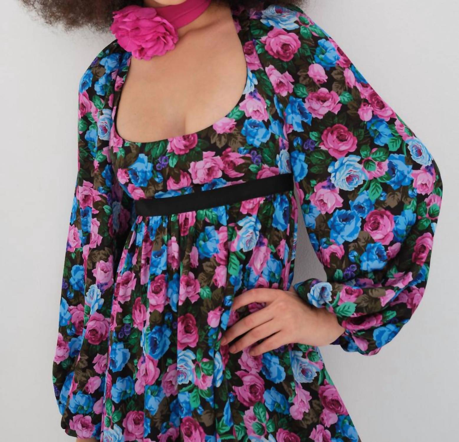 The kind of easy and flattering dress you'll be reaching for all season long. Introducing the Maggie Mini Dress by For Love & Lemons, a statement piece perfect for engagement occasions and Easter celebrations. This blue floral mini dress features long sleeves and an enchanting empire waist with a back tie closure for a flattering fit. Crafted from 56% Ecovero and 44% viscose, with a lining composed of 98% recycled polyester and 2% spandex, it embodies both elegance and eco-conscious design. For best care, dry clean only to maintain its boho chic style.