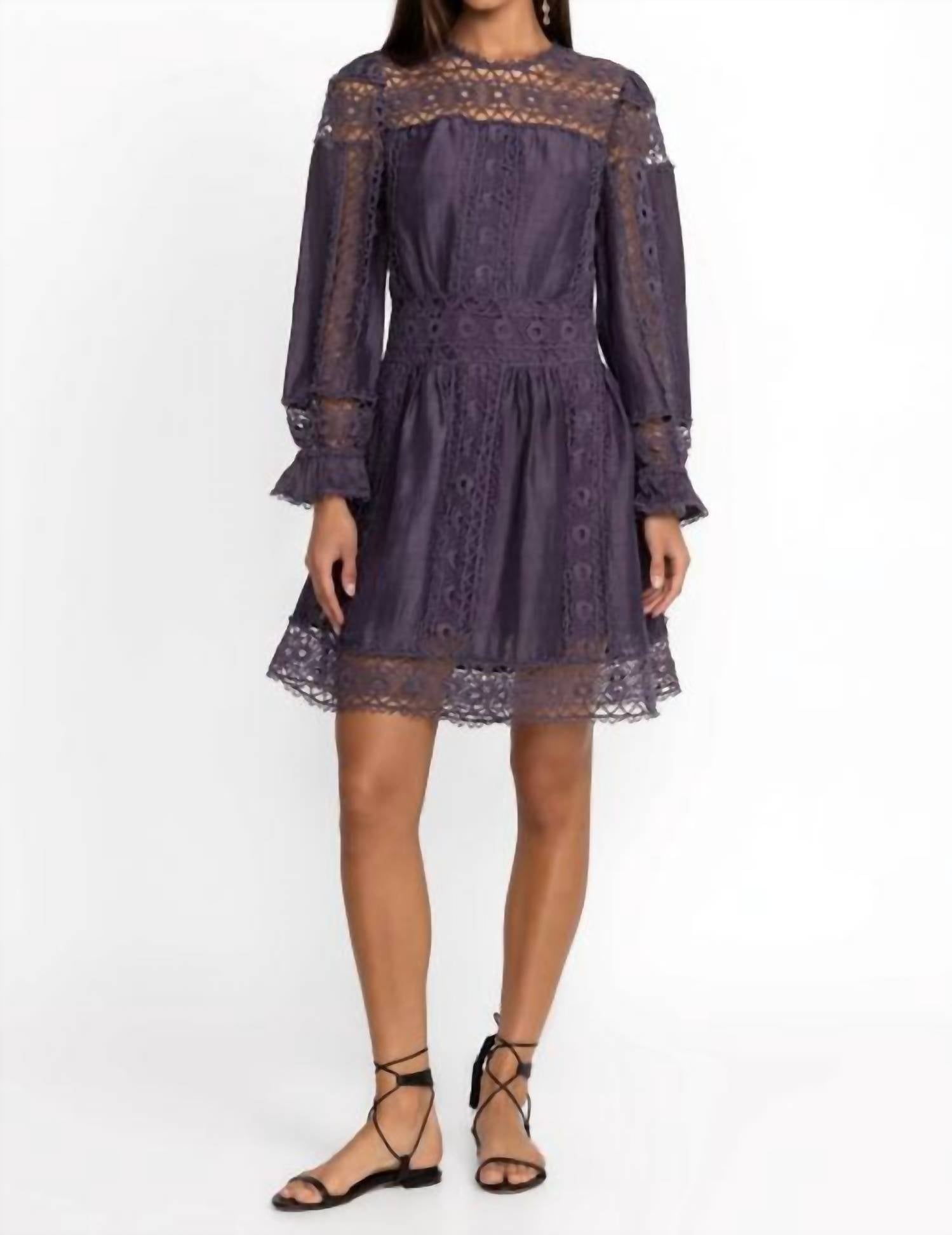 O Mini Vestido de Renda Mitska é confeccionado em uma mistura leve de linho e apresenta detalhes diferenciados em renda. Possui decote ilusão de renda e mangas longas com punhos elásticos. Este vestido forrado é finalizado com recortes em renda e zíper lateral invisível. Combine-o com sapatilhas de couro e acessórios dourados para um look elegante para o dia a dia.