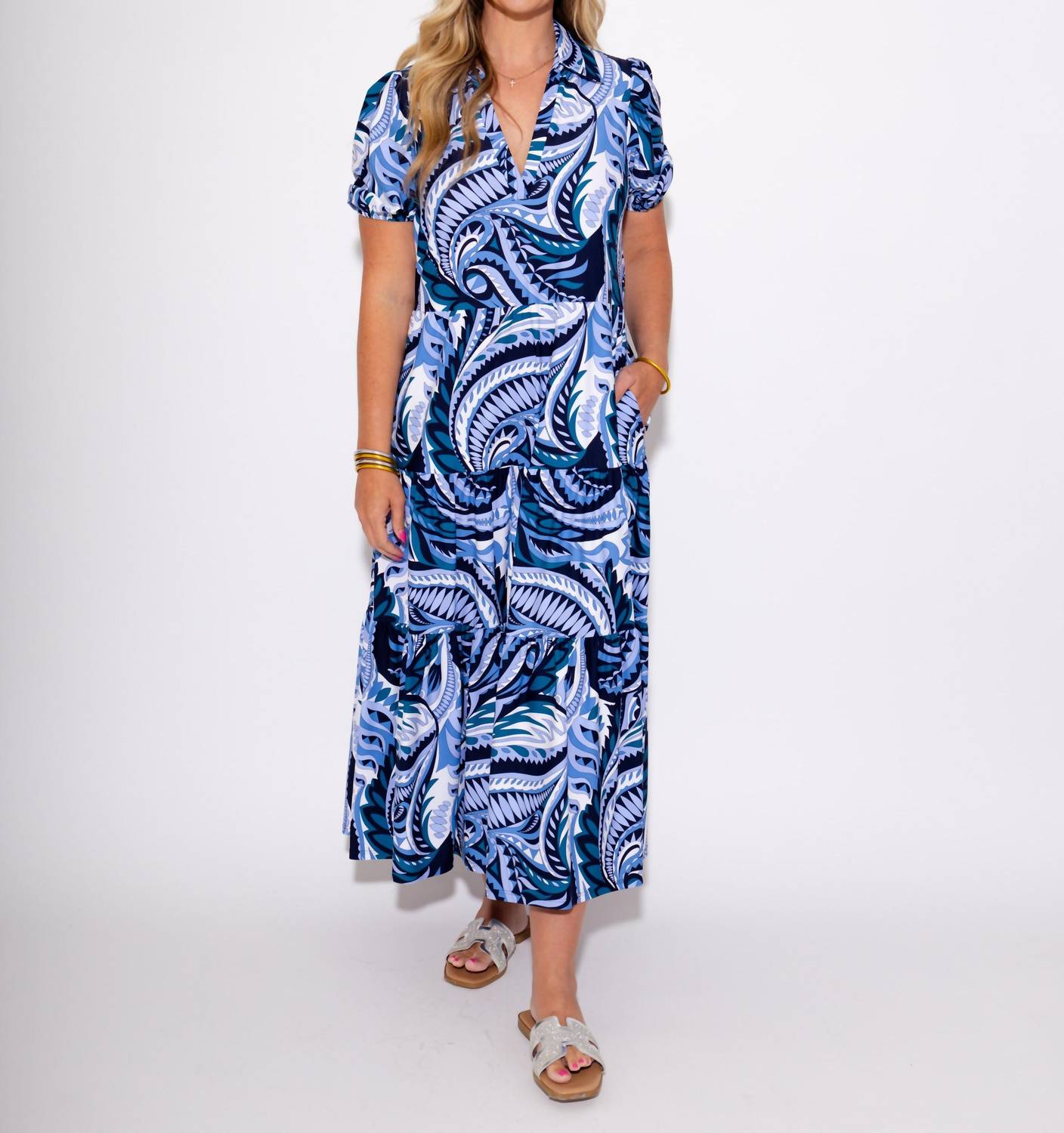 Pair with your favorite sandals for an effortlessly chic look. Introducing the Portia Dress by JUDE CONNALLY, a beautifully designed piece in Sundance Paisley perfect for any summer occasion. This casual dress features short sleeves and a V-neck, capturing the boho chic trend with its elegant A-line silhouette. Made from signature Jude Cloth fabric, it is crafted in the U.S.A. with a convenient pull-on closure. Its easy-care, easy-wear design ensures you remain effortlessly stylish and comfortable.