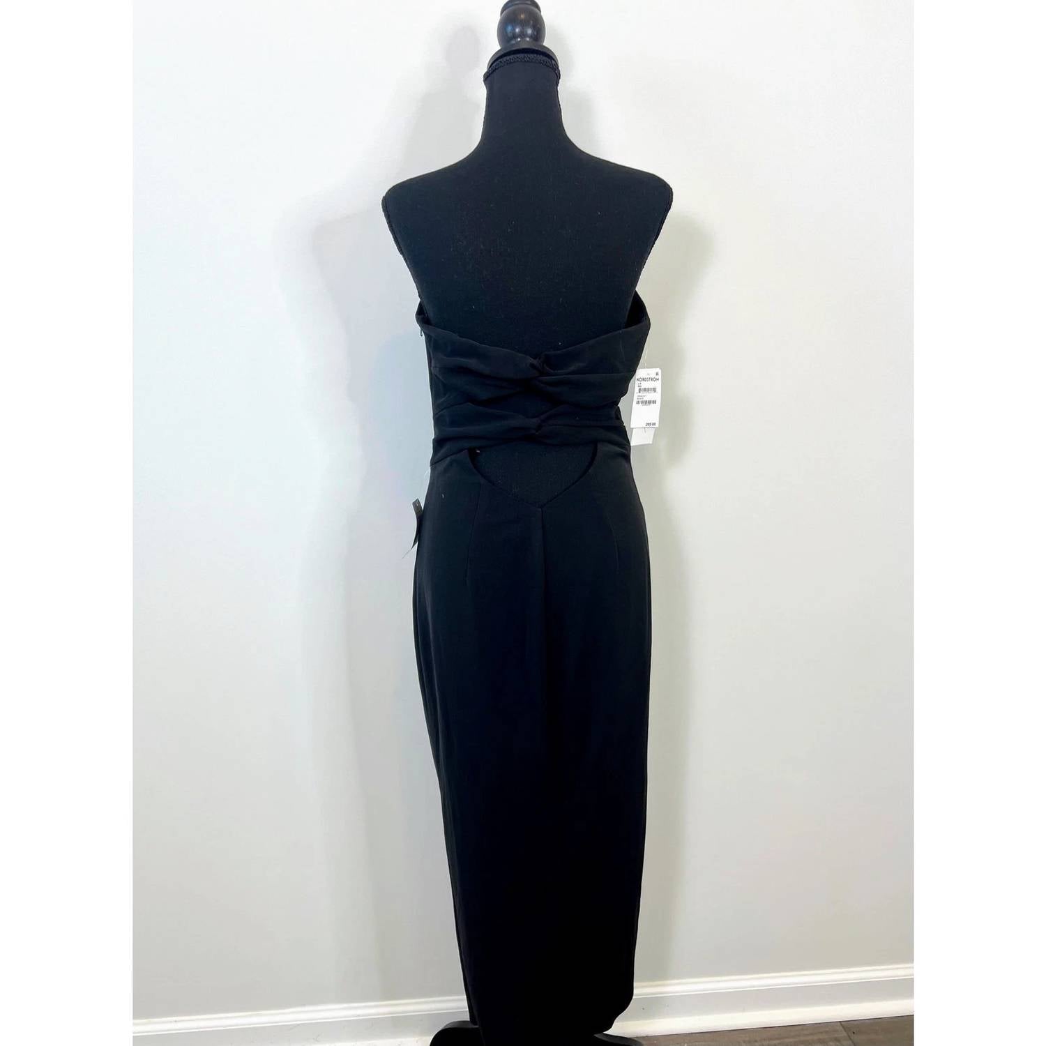 The pefect strapless dress for those warmer months. Add a cardigan for those cooler summer nights. Discover the Ashun Strapless Midi Dress by Katie May, an elegant sheath silhouette perfect for a spring dinner party. Crafted in the USA, this black solid dress features a sweetheart neckline and intriguing back cutouts and twists. The composition blends 98% polyester and 2% spandex for a comfortable yet fitted style, completed with a discreet side zipper. For optimal care, dry clean this minimalist piece to maintain its chic form.