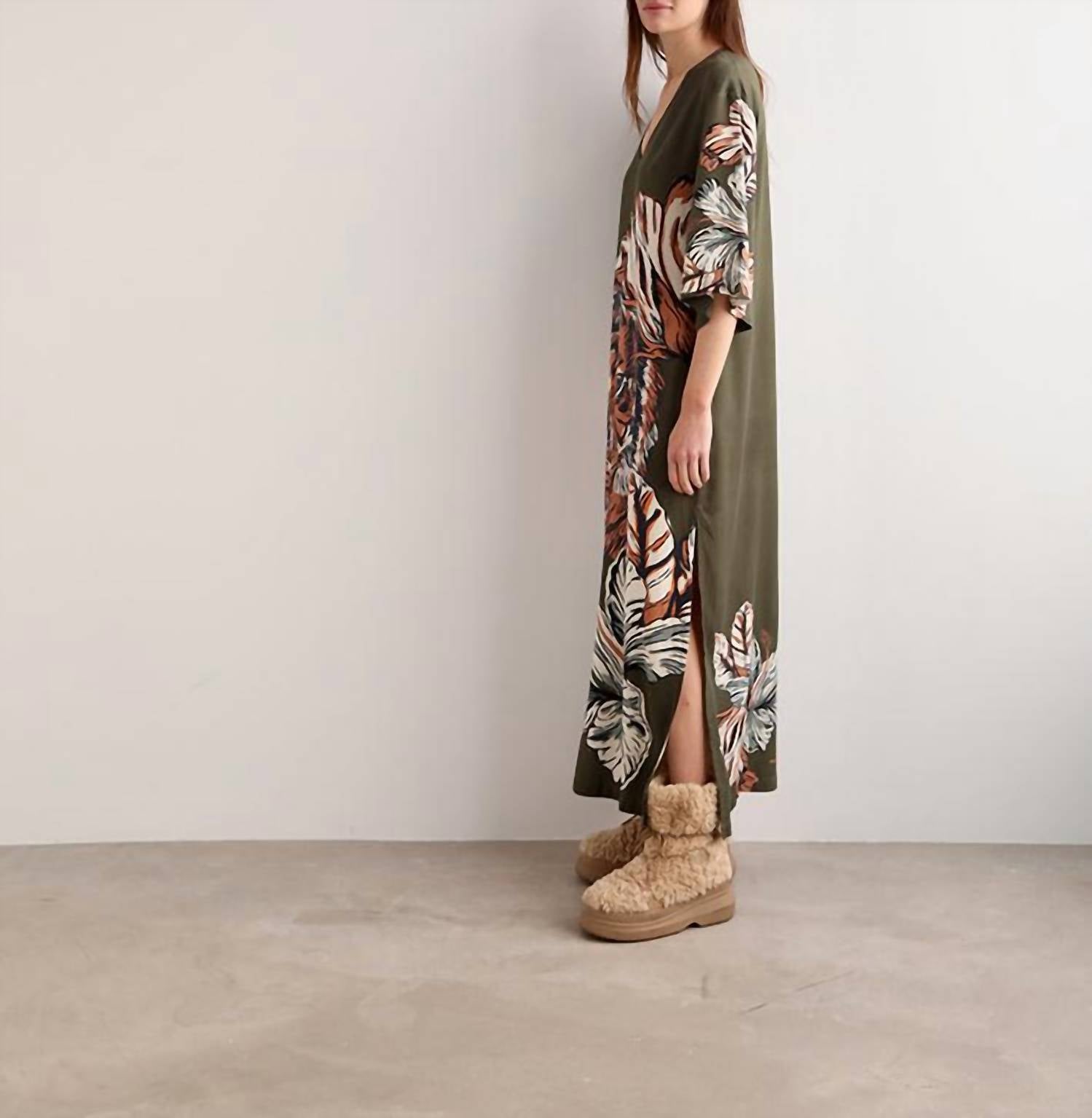 Who doesn't love a good maxi dress? This one you'll be reaching for season after season. Meet the Johana Tiger Long Dress by Las Sureñas, a bold and captivating choice for your vacation wardrobe. This stunning kaftan silhouette features a flattering V-neckline and elegant elbow sleeves, perfect for summer escapades. The eye-catching animal pattern is highlighted by a large tiger face complemented by vibrant flowers on a green backdrop. Designed for an easy pull-on closure, it embraces a maximalist trend ideal for relaxing celebrations.