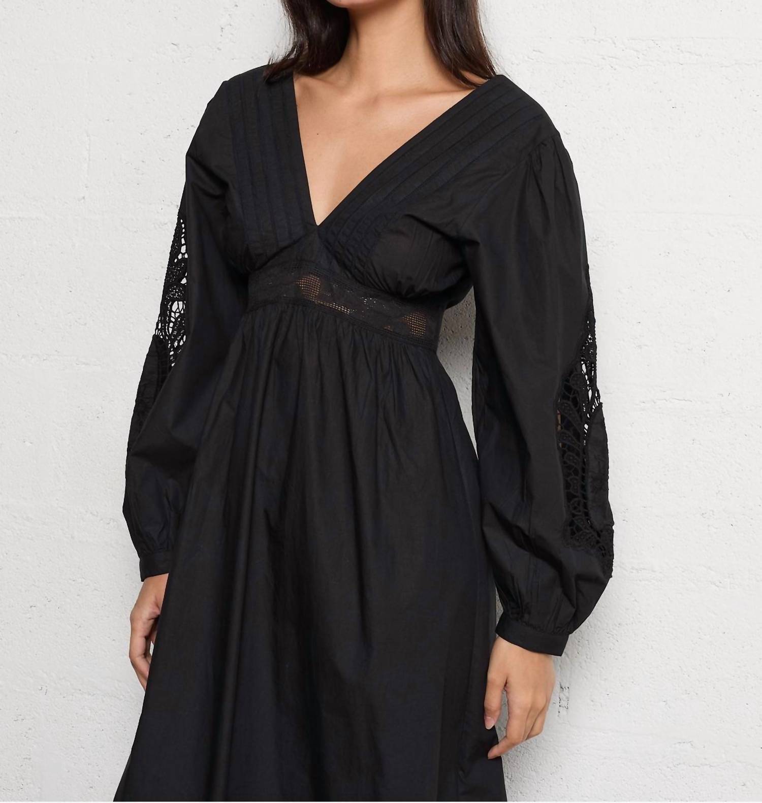 Combine este maxi com seu colar e sandálias favoritos para um look perfeito. Eleve seu guarda-roupa com o Vestido Louise Misha Dahlia, confeccionado em popeline 100% algodão orgânico para uma sensação luxuosa. Este vestido longo preto apresenta mangas longas bufantes adornadas com renda vazada, decote em V profundo com detalhes embutidos e uma sofisticada cintura império. O design é complementado por costas nuas e um laço central na altura do sutiã, oferecendo um toque contemporâneo de elegância. Originário de um local não especificado, o vestido fecha com zíper e pode ser lavado na máquina a 30 graus para facilitar os cuidados.