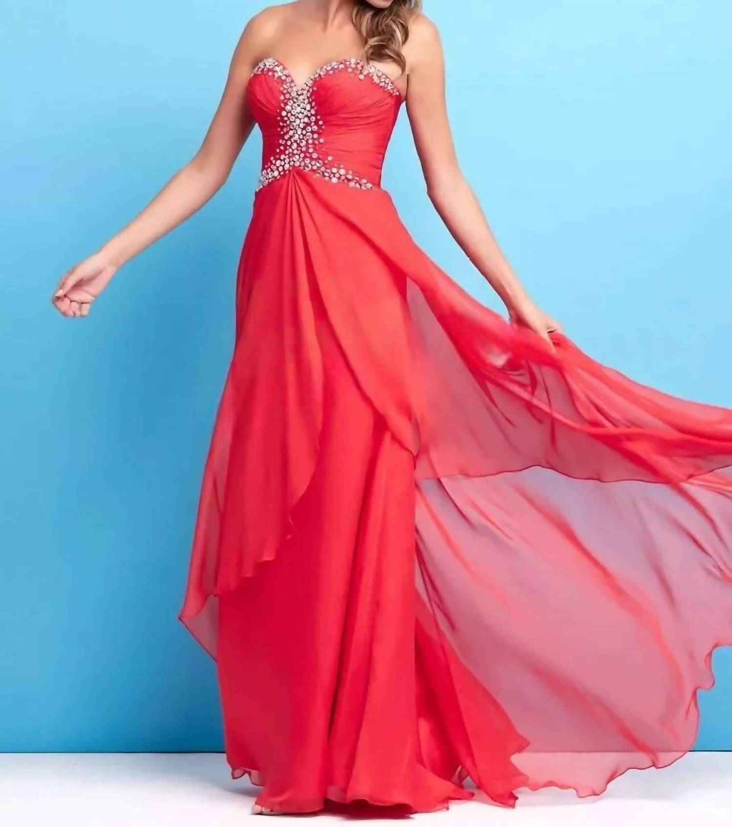 Procurando o vestido de festa perfeito? Não procure mais... Arrase no seu próximo evento com o Vestido de Baile Flowy Gala da MAC DUGGAL em um tom cereja cativante. Este vestido sem alças apresenta bordados intrincados no corpete e um decote coração, criando um visual elegante e refinado. O caimento e a silhueta flare realçam o corpo, tornando-o uma escolha de destaque para o baile de formatura. Fechamento: zíper.