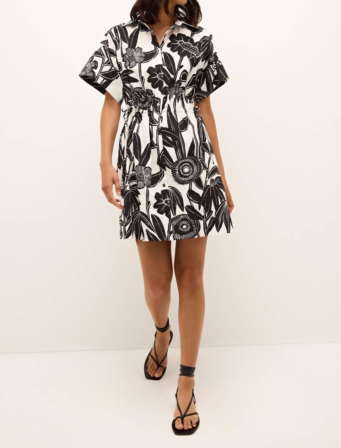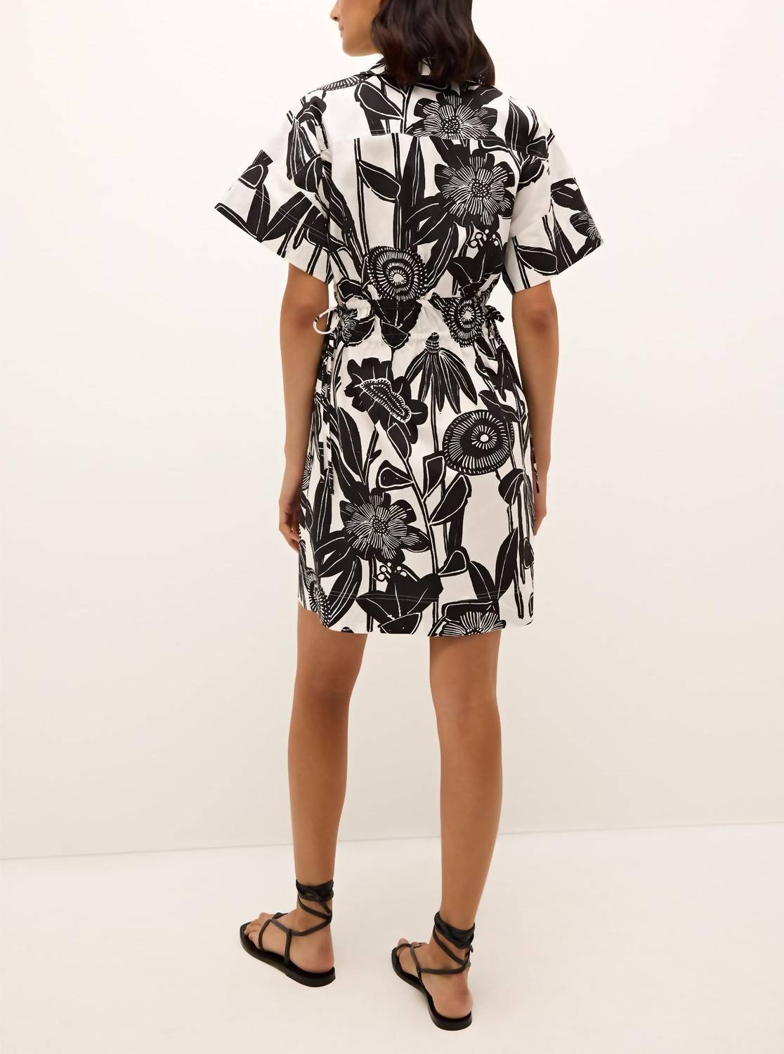 O minivestido perfeito para os meses mais quentes. O Vestido Curto Billie da Marie Oliver é uma peça charmosa, perfeita tanto para o trabalho quanto para o lazer, com uma estampa botânica ousada em preto e branco. Este vestido de manga curta evasê apresenta um corte slip-on exclusivo, com abertura frontal com botões e cós elástico com cordões para um ajuste ajustável. Confeccionado em 100% algodão, oferece um design relaxado com ombros caídos, garantindo conforto e versatilidade. Instruções de cuidado: lavar à máquina em ciclo delicado e pendurar para secar.