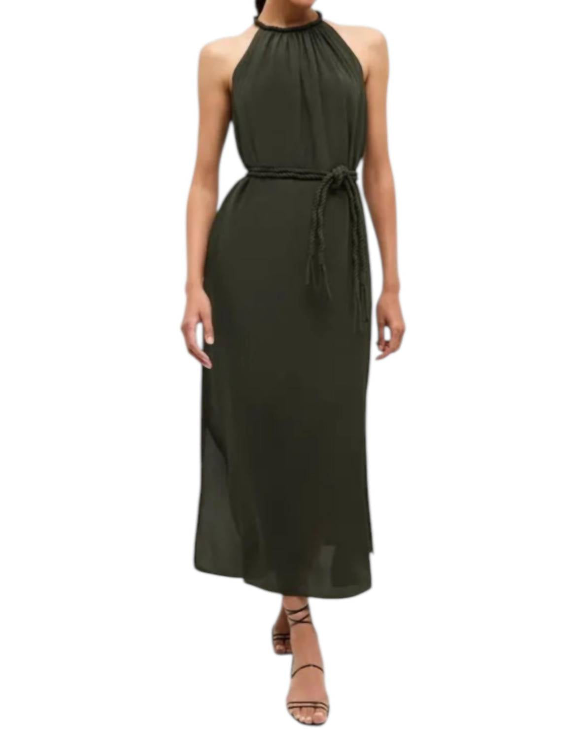 Um vestido midi tão versátil que suas opções de uso são infinitas. O Vestido Elena da Marie Oliver é uma escolha deslumbrante para qualquer coquetel ou evento de Natal. Este vestido midi evasê sem mangas apresenta uma cor sólida de resina e apresenta um decote halter com um elegante acabamento em trança trançada no pescoço e no cinto. Feito em 100% seda e totalmente forrado, oferece um toque luxuoso e uma silhueta sofisticada que pode ser usado com cinto ou solto. O fechamento é feito com zíper central nas costas e requer lavagem a seco para manutenção.
