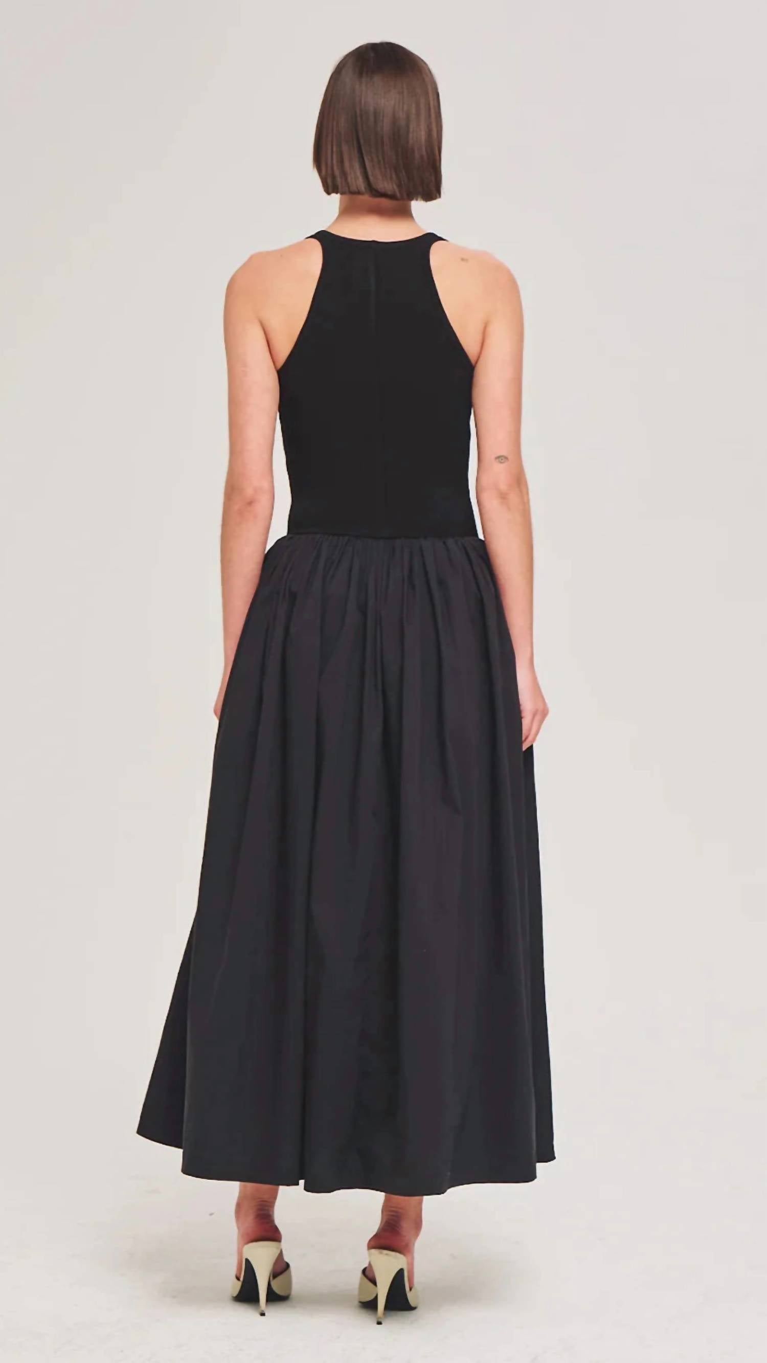 The perfect length dress does exist. Introducing the Sirinda Midi Dress by RONNY KOBO, a chic and sophisticated choice for your next evening event. This solid black A-line dress features a scoop neck and is designed with a sleeveless silhouette, offering timeless elegance with a modern twist. The dress is crafted from a viscose blend with a built-in bodysuit, while the skirt is 100% cotton, ensuring comfort and style. Closure: Easy pullover style. Care: Dry clean only.