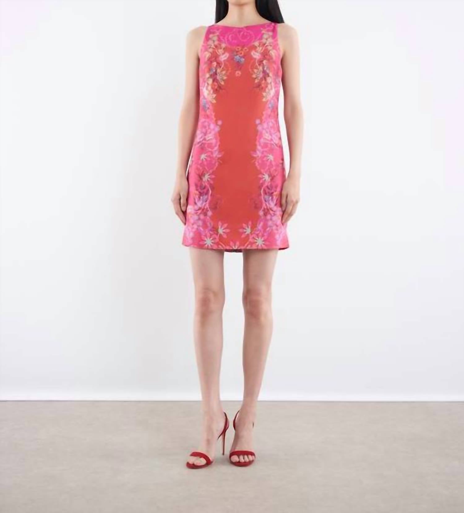 Discover the Alba Mini Dress by SALONI, a stunning sleeveless piece that exudes elegance with its floral print in a chic Piaza color. This shift silhouette dress is made from 100% silk and features a sophisticated boatneck. With a mini length, it's perfect for spring and special occasions like anniversaries or Chinese New Year. Closure: Zip closure. Care instructions: Hand wash and line dry. Style # ALBA-B DRESS 11139.