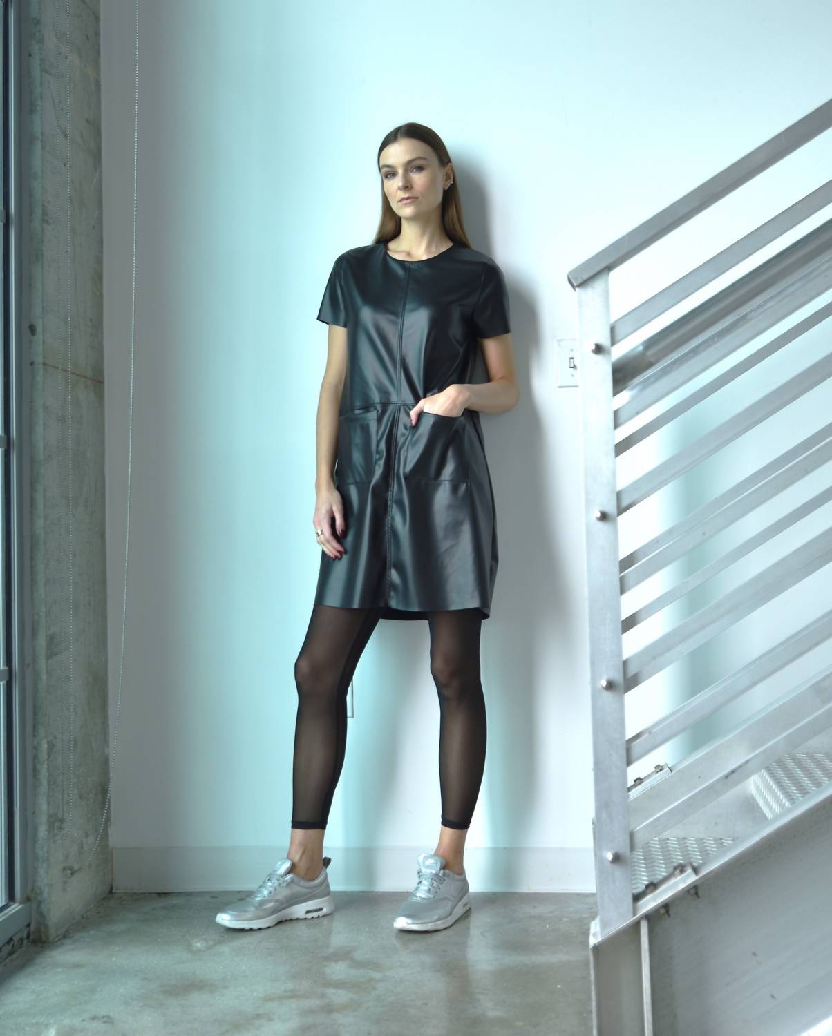 Apresentamos o Vestido Anastasia Feminino da Simply Mila, a personificação do glamour e da elegância atemporal. Este minivestido possui mangas curtas e é confeccionado inteiramente em 100% poliuretano, garantindo um visual ousado e moderno. Com corte em A acima do joelho, fecha com zíper invisível nas costas e é fabricado nos EUA. Cuide desta peça marcante lavando-a à máquina em ciclo frio e delicado, do avesso, e secando ao ar livre; passe a ferro em temperatura fria, se necessário. Disponível nos tamanhos XS-XL, com medidas que variam de busto 81 cm a 101 cm e quadril 94 cm a 114 cm.