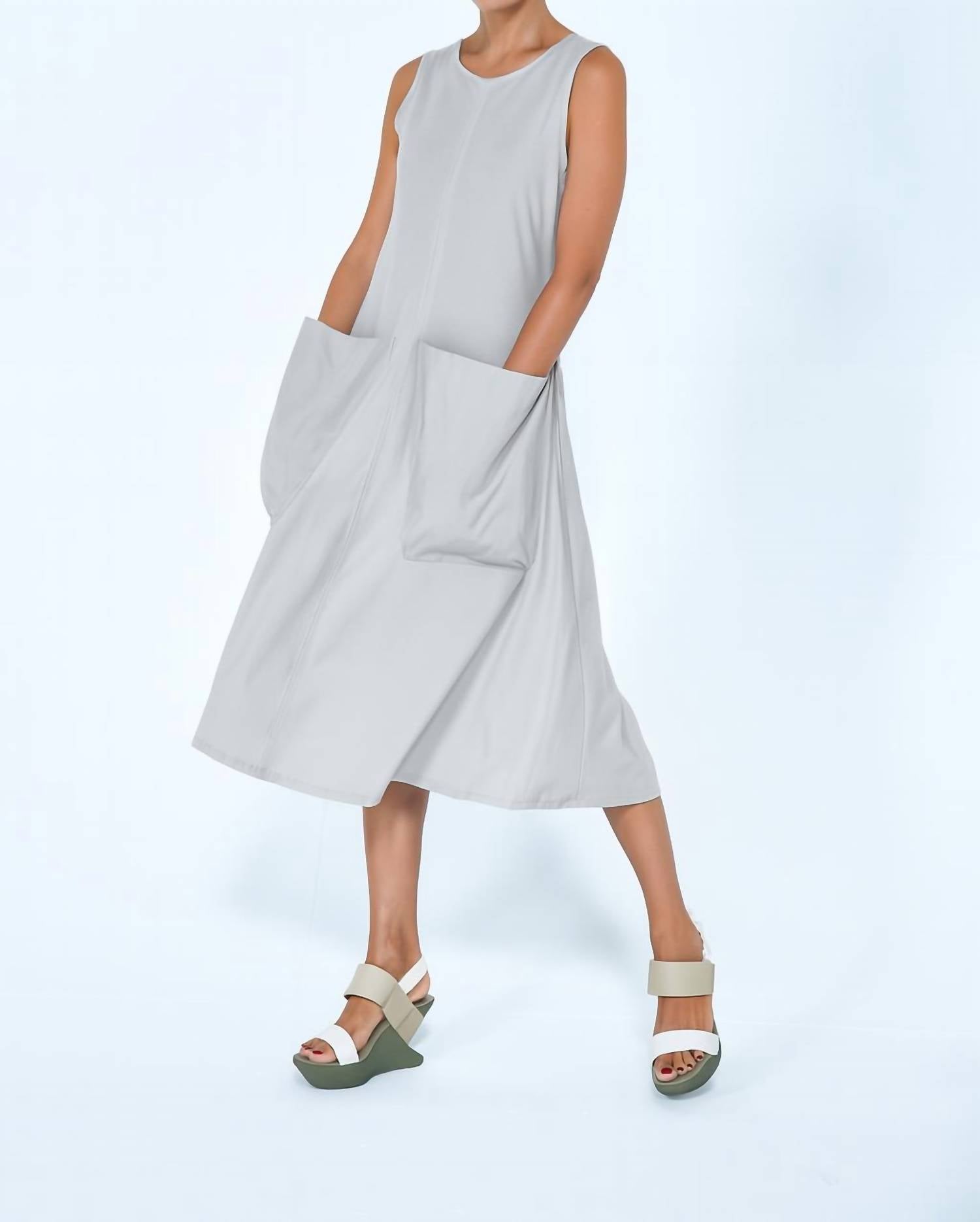 O vestido com o comprimento perfeito existe. Descubra o Vestido Feminino Simply Mila Big Pocket, uma adição divertida ao seu guarda-roupa de verão em prata chique. Este vestido sem mangas e evasê é confeccionado em 100% algodão com uma mistura contrastante de 56% algodão, 37% poliéster e 7% fios metálicos para um toque único. Fabricado nos EUA, possui um fecho prático e uma gola redonda clássica. O cuidado é simples: lave na máquina com água fria, ciclo delicado, do avesso, seque ao ar livre e passe a ferro em temperatura baixa, se necessário.