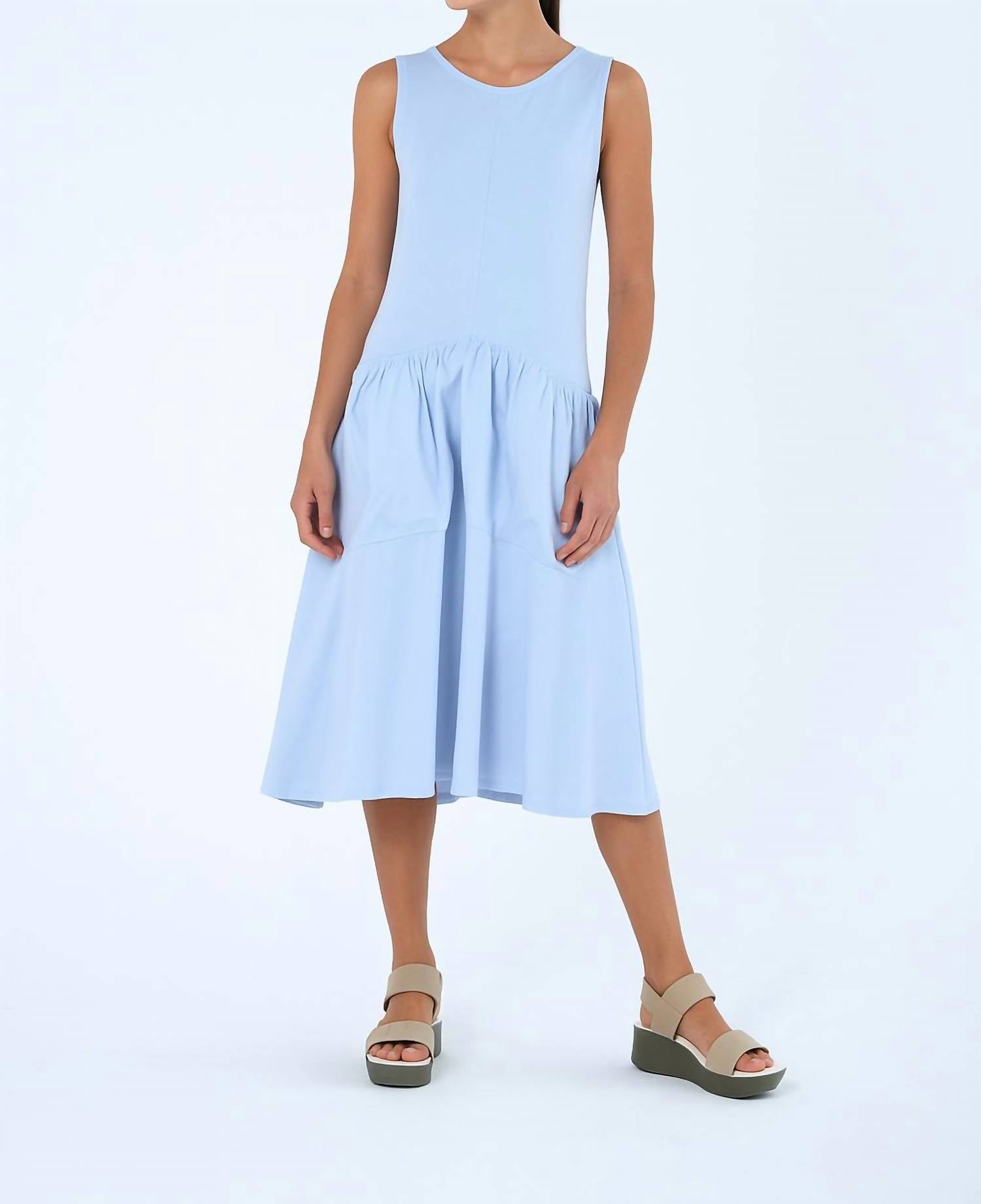 O Vestido Pocket Bags Feminino Simply Mila em azul-celeste é a escolha perfeita para as suas próximas férias. Este vestido midi evasê, sem mangas e com corte em A, confeccionado em 100% algodão com contraste de mistura de algodão, combina com facilidade o estilo minimalista com a funcionalidade. Com bolsos frontais grandes para armazenamento essencial, este vestido oferece gola redonda e fecho prático. Orgulhosamente fabricado nos EUA, é fácil de cuidar, com lavagem à máquina com água fria em um ciclo delicado e instruções de secagem ao ar livre.