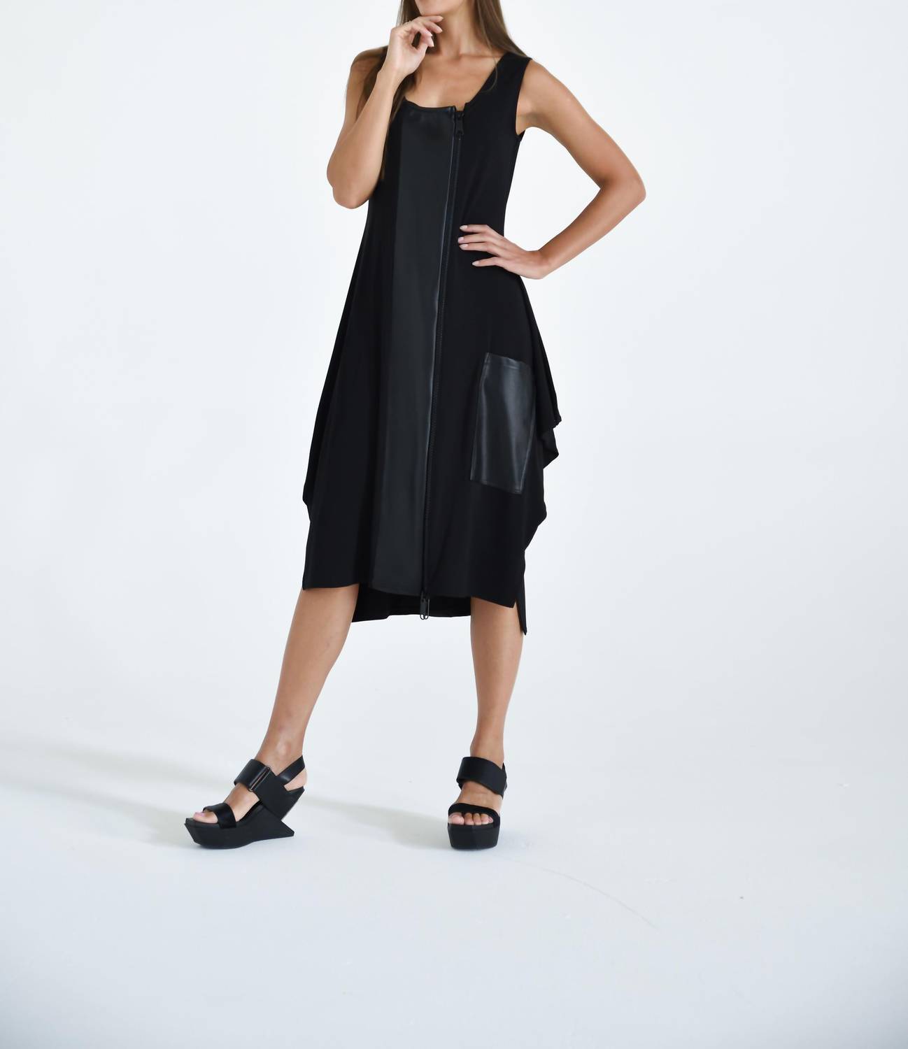 Entre em um estilo sofisticado com o Vestido Freya Feminino Sem Mangas da Simply Mila. Projetado para um toque moderno, este vestido midi preto apresenta um painel frontal marcante em couro sintético com zíper completo para maior funcionalidade e elegância. O corpo em malha macia e fluida flui graciosamente, enquanto os bolsos laterais assimétricos e o decote redondo oferecem um toque contemporâneo. Composição: Rayon/Elastano e Couro Vegano (poliuretano). Cuidados: Lavar à máquina com água fria e secar na horizontal. Fabricado nos EUA.