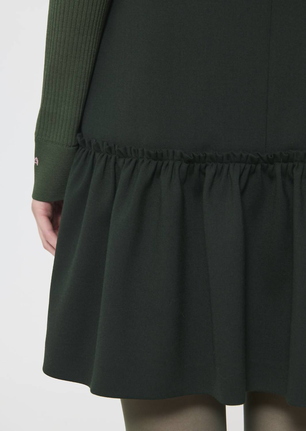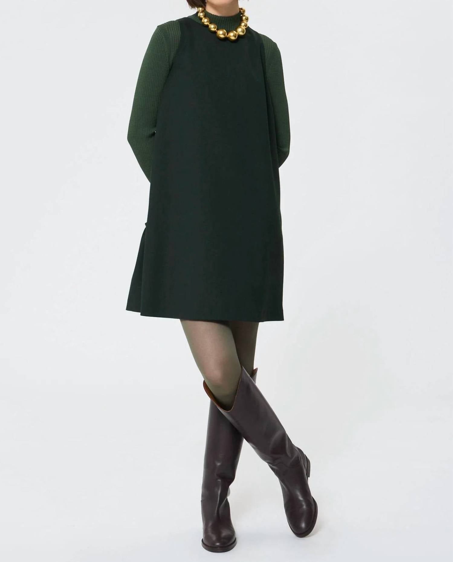 Introducing the Rosabel Sleeveless Dress by TARA JARMON, a chic addition to your fall wardrobe in a striking English green. This women's shift dress features a crewneck and a solid minimalist design, crafted from 60% wool, 38% polyester, and 2% elastane, with a 100% viscose lining. A short length dress originating from the Meet Mary wardrobe collection, it boasts a convenient zip closure and is perfect for a dinner party or Valentine's Day celebration. Care: Dry clean only.
