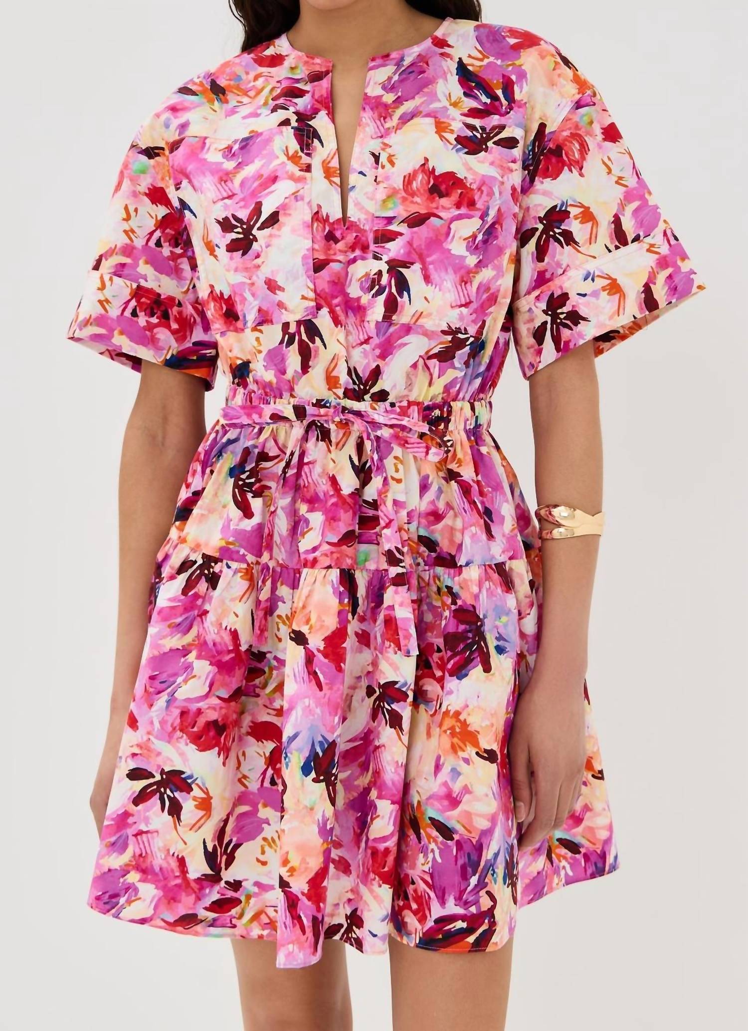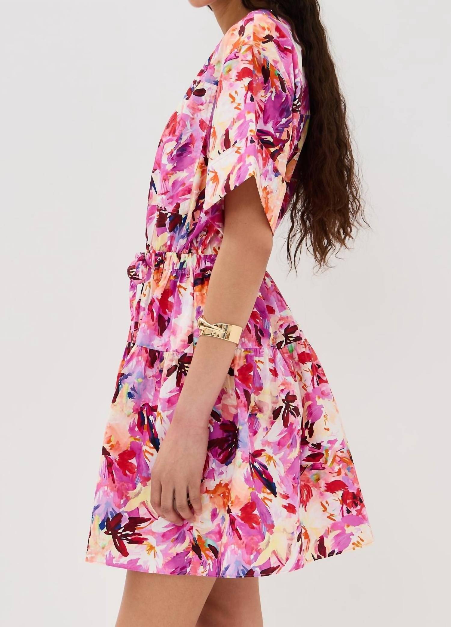 Vestido curto estilo boho chic em um tom vibrante de azaleia, perfeito para suas festas de fim de ano. Com mangas curtas e decote em V. A silhueta em corte A oferece um estilo despojado com sua estampa floral. Confeccionado em 100% algodão. Possui cós elástico forrado com cordão e bolsos laterais na costura para maior praticidade. Fechamento por pressão. Lavagem à mão. Comprimento: mede 86,0 cm a partir do ombro. Para quem busca caimento, o modelo é grande e largo, portanto, recomenda-se um tamanho menor para um caimento mais justo. A modelo Anisa (1,72 m) veste tamanho 0.