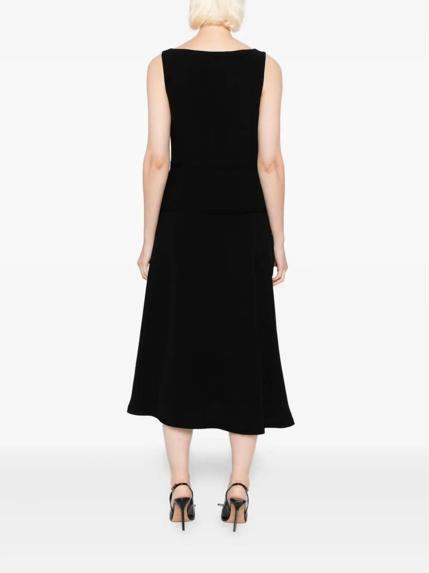 Just add slides or mules and you are good to go. Introducing the Vivi Midi Dress by Ulla Johnson, a sophisticated piece in black designed for versatile elegance. This sleeveless A-line dress features a sweetheart neckline that gracefully frames the bust. Crafted entirely from luxurious 100% viscose satin-back crepe, it offers comfort and a touch of quiet luxury for any occasion. Closure is a simple pull-on style, and the garment is imported.