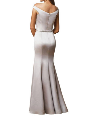 Belsoie - Vestido longo de dama de honra em cetim marquês com ombros à mostra