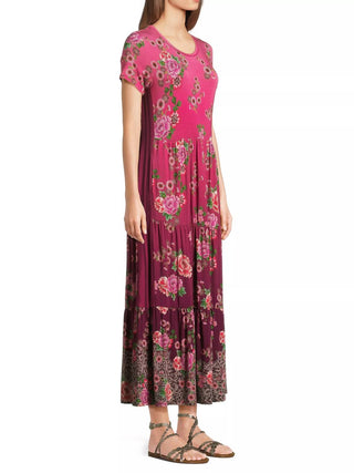 Johnny Was - Vestido midi de malha com manga curta e camadas para mulheres