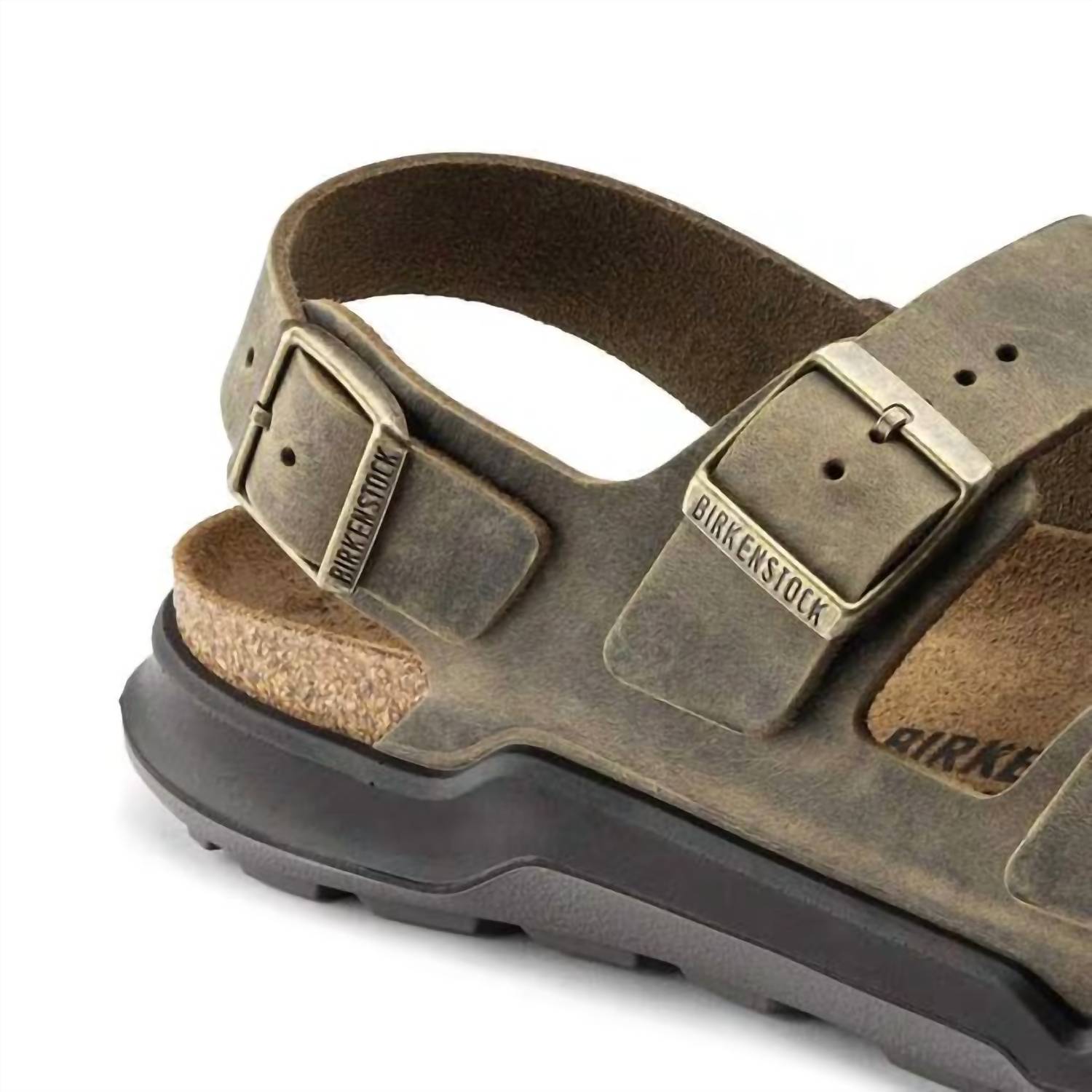 The BIRKENSTOCK Milano is the classic backstrap sandal. This version pairs iconic Birkenstock features including oiled leather uppers, buckle closures and suede footbed liners with direct-injection outdoor-ready outsoles for increased traction and durability.