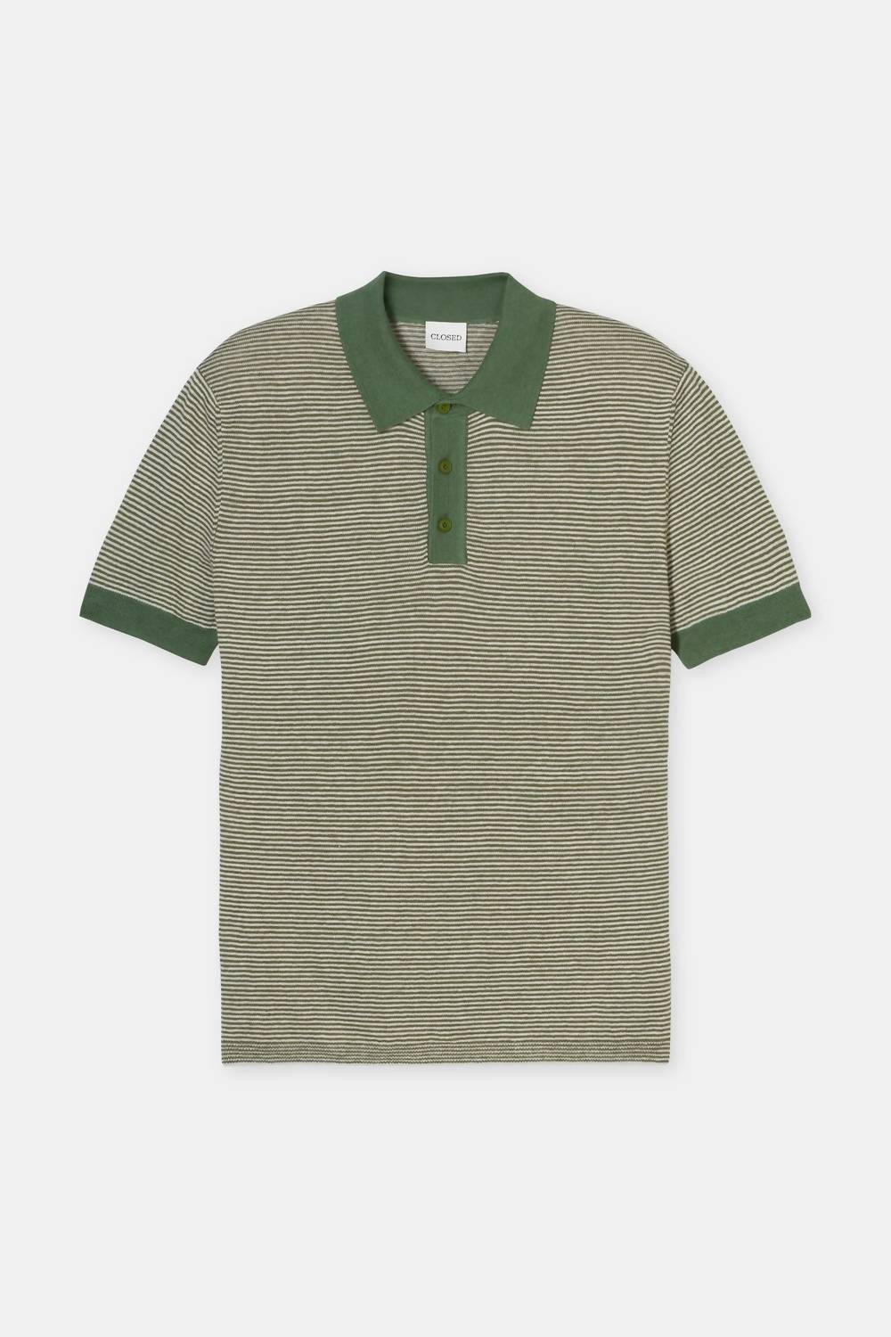 Embrace timeless elegance with the Closed Men's Linen Blend Polo in Ranger Green. Featuring short sleeves and a sophisticated collar, this shirt is crafted from a luxurious linen blend for comfort and style. The classic striped design is perfect for fall occasions, and its pull-on closure ensures easy wear. For care, machine wash for effortless maintenance. Model is 6'1" and wears a size M.