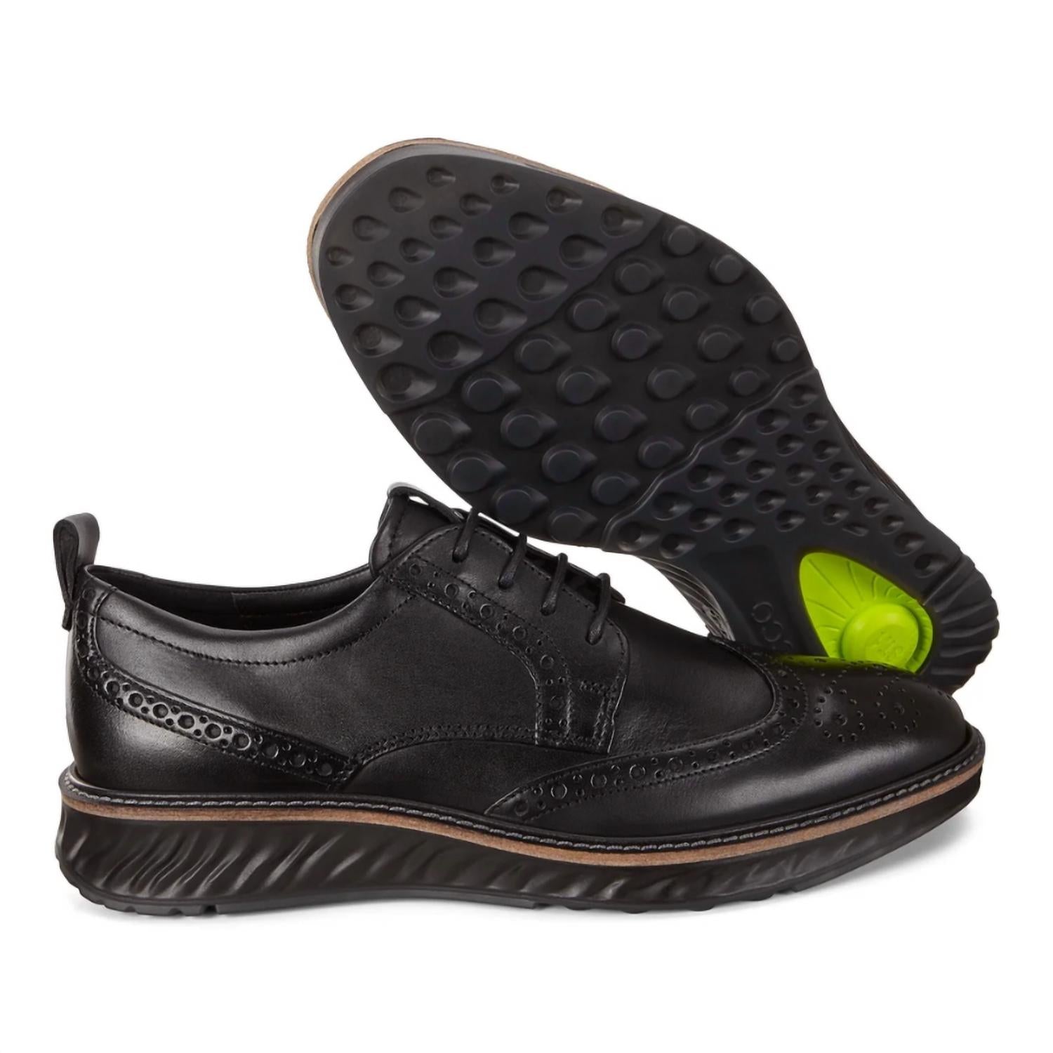 ECCO presents the Men's St.1 Hybrid Shoe in sophisticated Black Santiago, an embodiment of preppy elegance perfect for holiday parties. These blend style with functionality, featuring a round toe and a modern low-top design with nubuck leather accents over a predominantly full grain leather upper. The interior is lined with soft textile for comfort, while the sole is crafted from dimpled PU/TPU providing durability and grip. Ideal for the spring season, this shoe is a versatile addition tailored for discerning tastes.