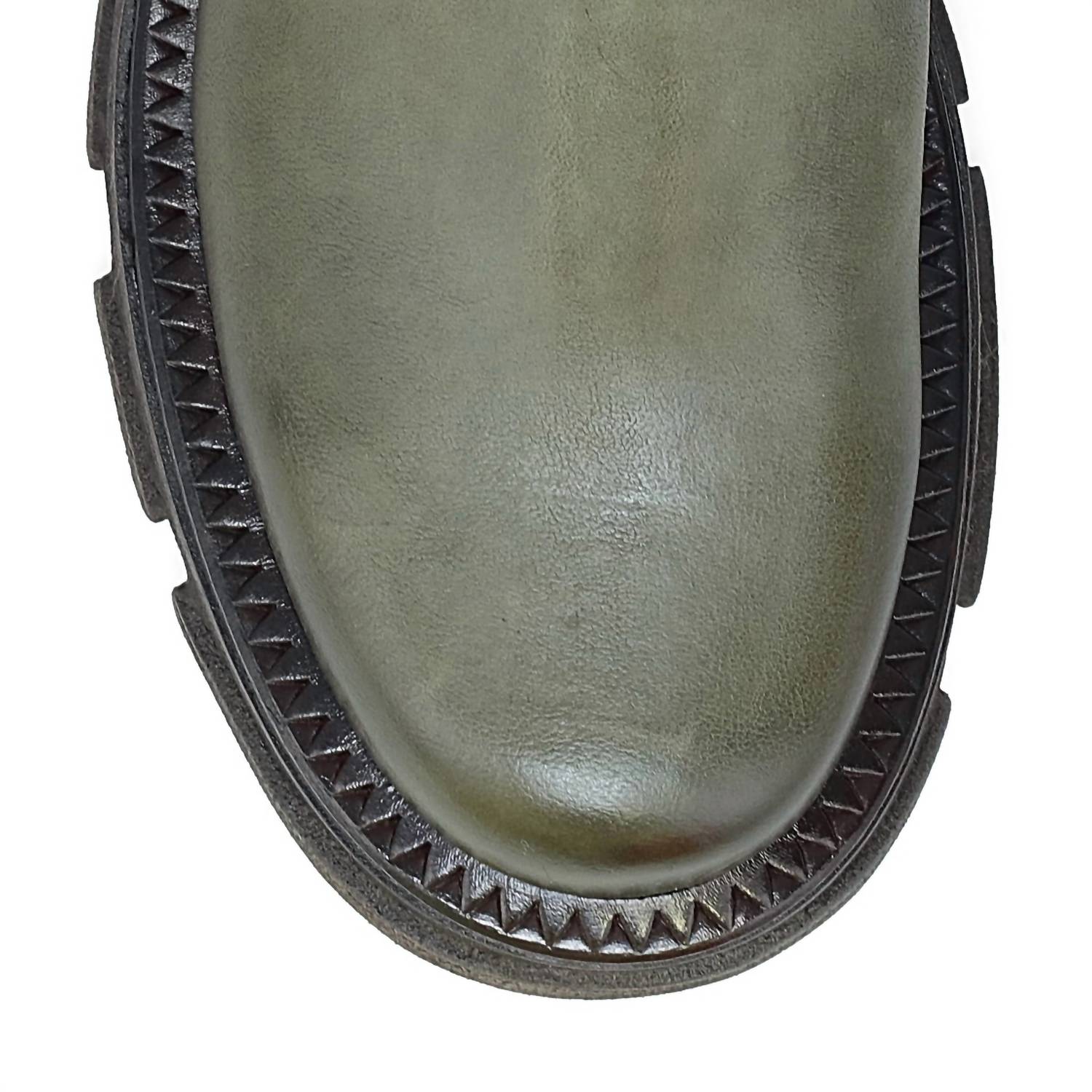 LINDER… Couro polido à mão e sola grossa com sulcos.
