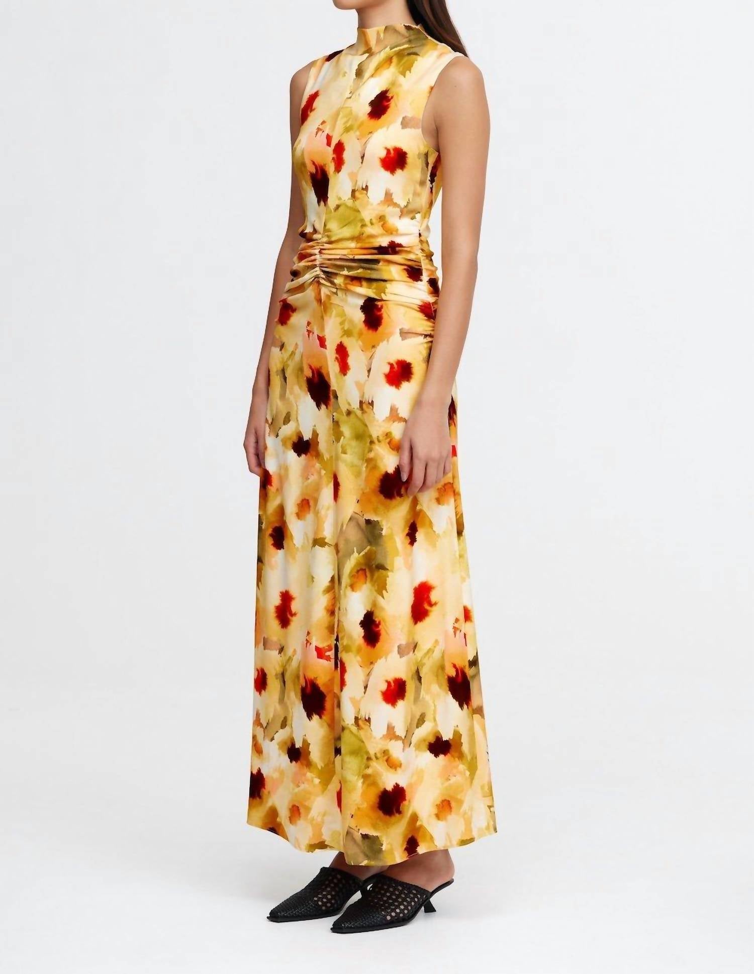Introducing the ACLER Redhill Maxi Dress in Poppy Bouquet, a standout piece for any wedding occasion. This sleeveless dress boasts a mockneck and an A-line silhouette, crafted from a viscose blend with a hint of stretch for comfort. The floral pattern and gathered waist elevate the design, while the center-back zip closure ensures a seamless fit. Model is 177 cm (5'9.5") wearing AU 8 / US 4. Composition: Main 97% Viscose, 3% Elastane; Lining 95% Polyester, 5% Elastane.