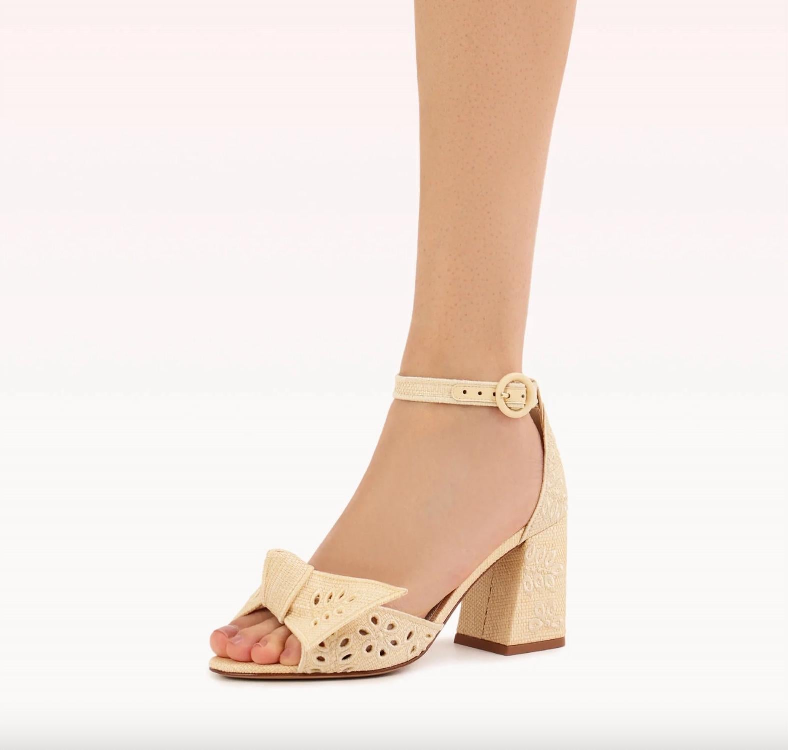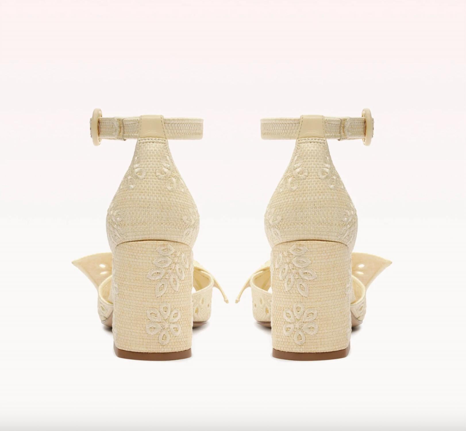 Flowy dresses, cropped pants, and even jumpsuits... this sandal works with them all! Step into elegance with the Maxi Clarita Embroidered Sandal by ALEXANDRE BIRMAN, a luxurious cream sandal designed for a medium width fit. Crafted from vibrant raffia and leather, it features a stylish almond toe and a comfortable block heel that stands at 3.35 inches. The exquisite embroidery is inspired by French l’aise artistry, bringing freshness and romance to your summer wardrobe. Perfect for vacation or any special occasion, this sandal embodies the maximalist trend with its refined charm.