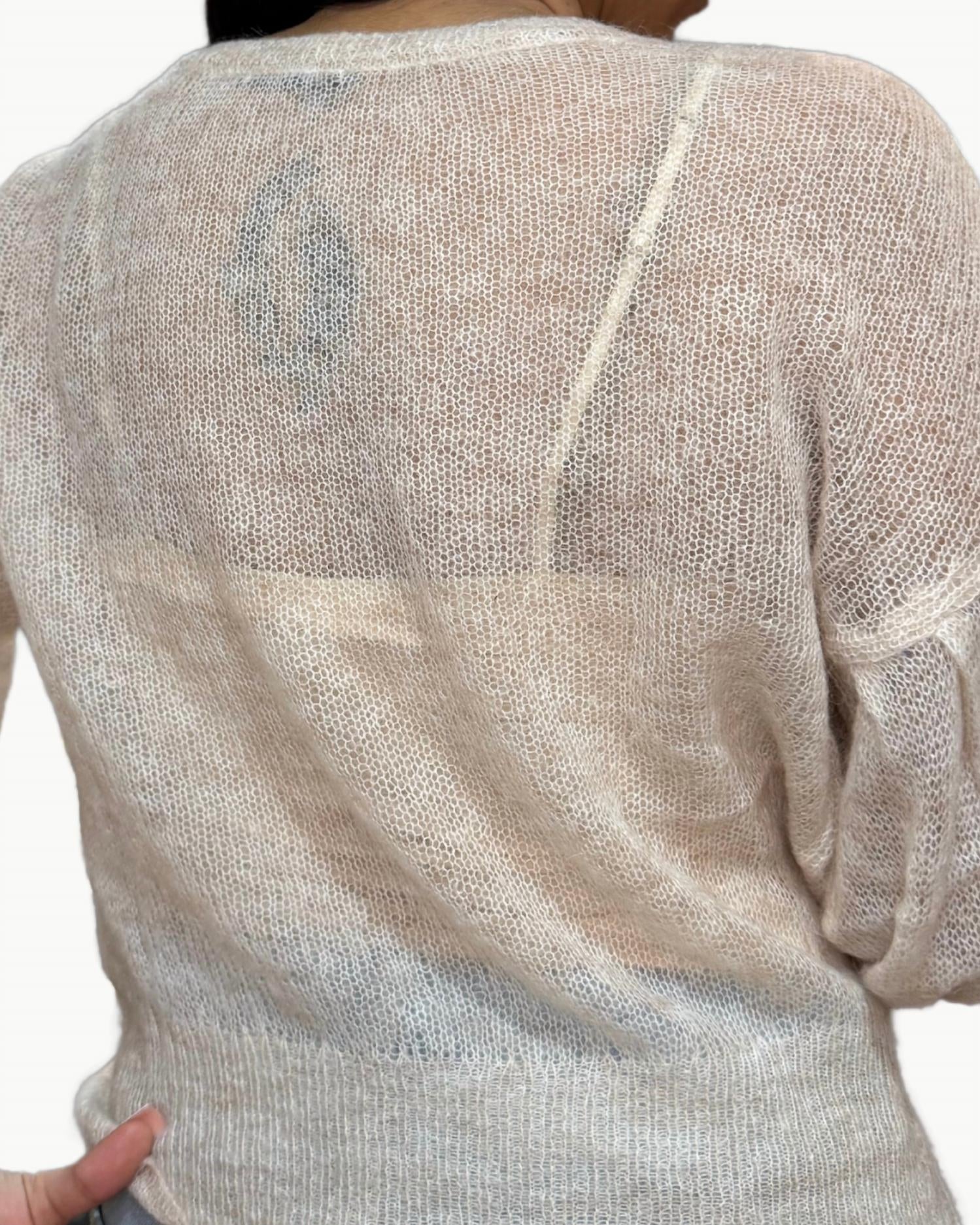 Pair this with your favorite jeans and slides for your next girls night out. The Ballet Topper by Brazeau Tricot in Clay is a sophisticated layering piece for women, perfect for fall occasions like Thanksgiving. Designed with three-quarter balloon sleeves and a scoopneck, it features a textured pattern in a luxurious nylon blend of 30% alpaca, 30% wool, and 40% nylon for a lightweight and sheer feel. Country of Origin: Not specified. Closure: Pull on. This versatile blouse offers effortless elegance and is perfect for rounding off a 90s fashion-inspired look.